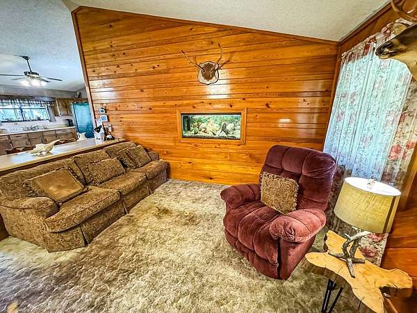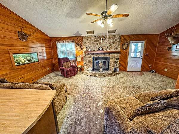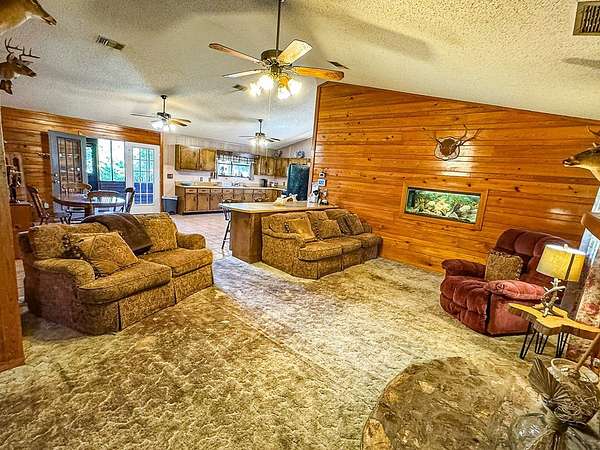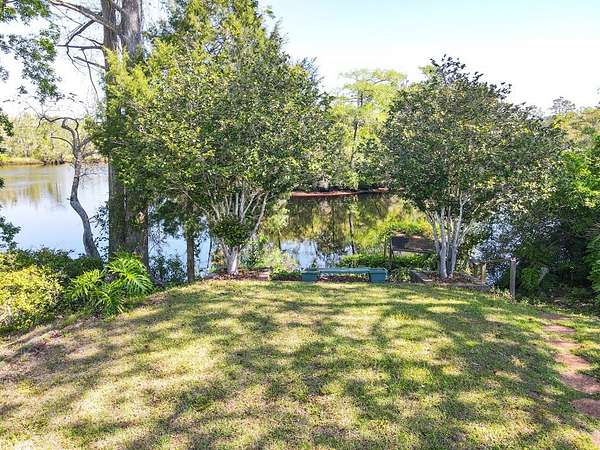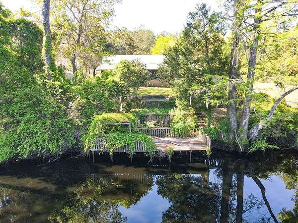 Nestled on a scenic bend of the Sopchoppy River, this 2-bedroom, 2-bath home offers the perfect blend of serenity and adventure on 2 acres. Step inside the front door to discover a spacious living area with vaulted ceilings, pine paneling, a cozy stone fireplace, and a striking built-in aquarium-an ideal space to unwind or entertain. The oversized kitchen boasts generous counter space, cabinets, a convenient breakfast bar, and easy access to the dining area, which opens onto a large screened-in back porch overlooking the river. A separate mudroom/laundry room offers a secondary entrance. The guest bath and a roomy guest bedroom are just off the main living space. The private master suite includes its own full bath and direct access to the back screened porch-perfect for enjoying peaceful mornings or evening breezes. Enjoy boating or fishing right from your own backyard, with a private dock and boat launch needing new owner updates for full functionality. The expansive yard also includes two metal storage buildings and flourishing rows of muscadine grapevines. There is a well for outdoor watering and also city water/sewer. Seller needs 24 hour notice to show. Call us today!