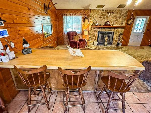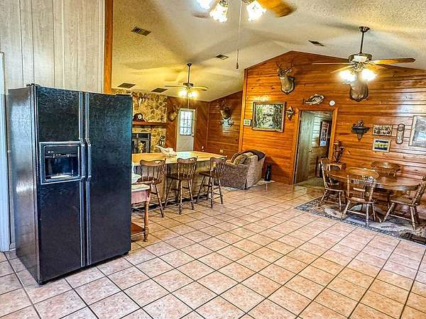 - Vaulted Ceiling(s), Walls Paneled, Woodwork Stained