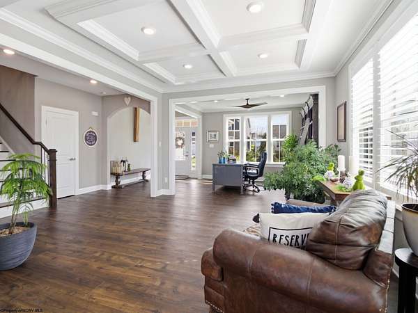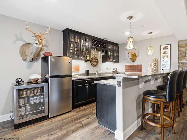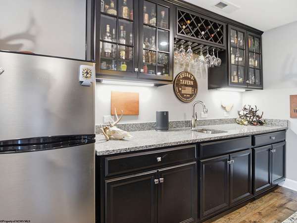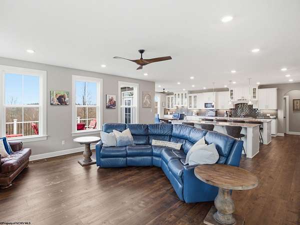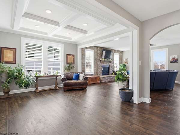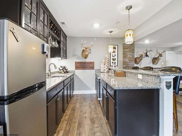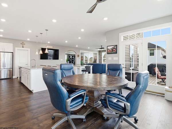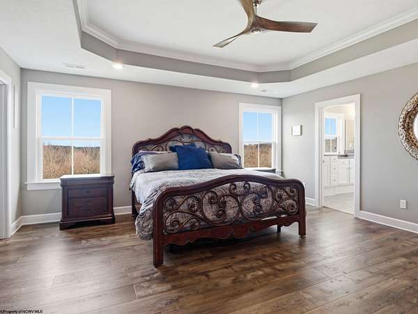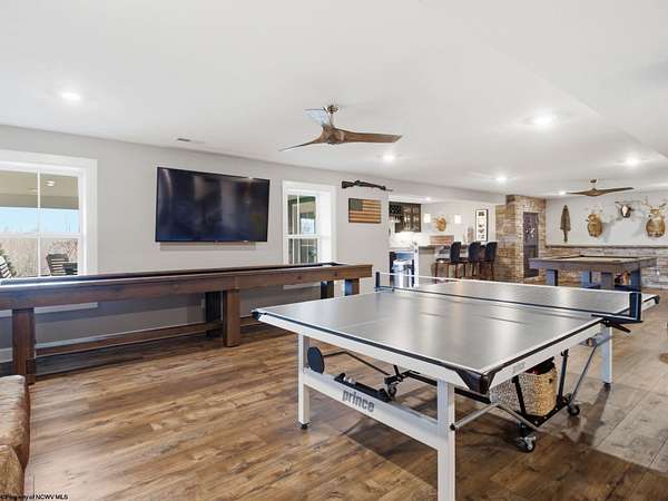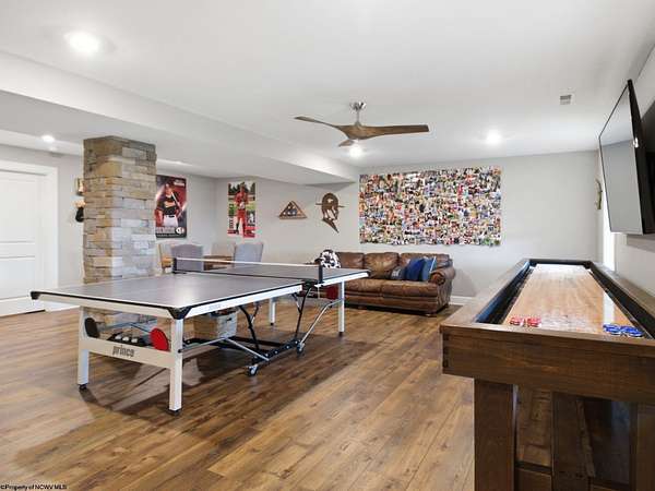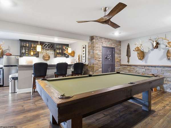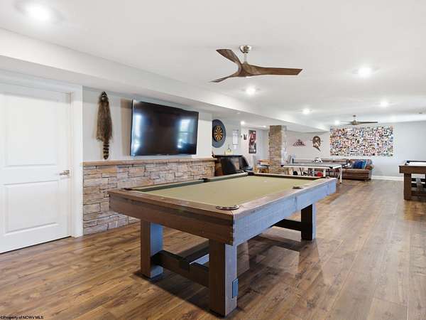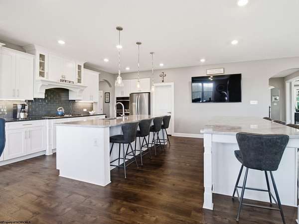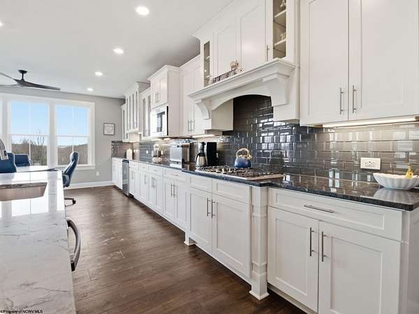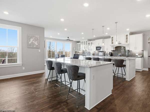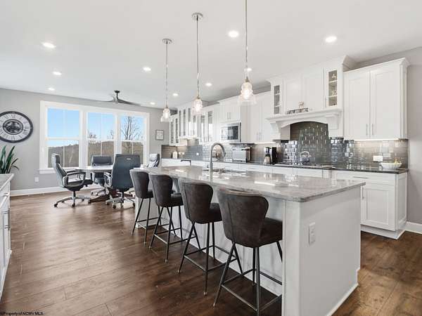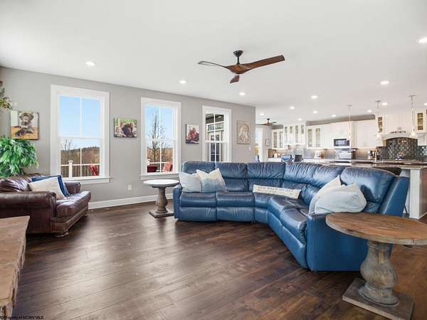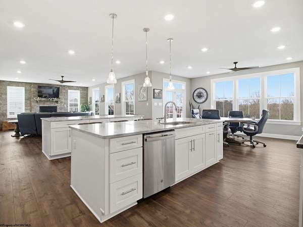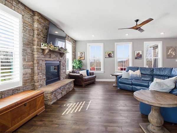 Experience the pinnacle of refined living in this extraordinary custom-built estate, where impeccable craftsmanship and curated design converge to create a truly elevated lifestyle. A grand open-concept interior unfolds with a striking floor-to-ceiling stone fireplace, setting the tone for sophisticated yet inviting living. The centerpiece of the home is a show stopping gourmet chef's kitchen designed with double islands, an entertainer's dream offering both beauty and function. With 5 bedrooms and 5 full baths, the residence is thoughtfully appointed to provide comfort and privacy. The primary suite is a serene retreat, featuring an ensuite and dual WIC's. Wide-plank 3D luxury vinyl flooring flows seamlessly throughout, blending elegance with modern durability. The fully finished lower level redefines leisure, complete with a bespoke bar and private fitness studio perfectly suited for both entertaining and everyday indulgence. Outdoors, breathtaking views of Cheat Lake create a picturesque backdrop for exceptional entertaining and tranquil living. An additional 3.6+/- acres outside of the HOA offers rare privacy and endless potential, making this property as expansive as it is exquisite.