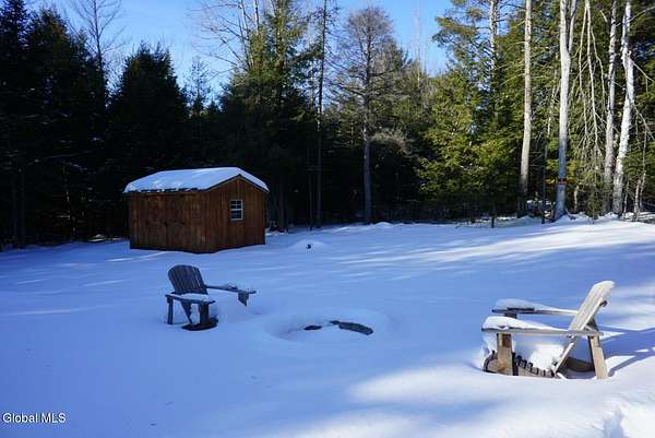 Private 2.84-acre partially cleared, buildable lot in a peaceful setting with proposed home and septic locations. Property features a gravel driveway with camper pad, Amish-built shed on gravel base, fire pit, and walking trail. Infrastructure in place includes 200-amp underground electric service plus 30-amp and 50-amp RV hookups. Conveniently located minutes from Cronin's Golf Resort, Friends Lake, Loon Lake Public Beach, and numerous Adirondack destinations-ideal for a year-round home, seasonal retreat, or recreational getaway. *Financing Available*