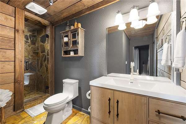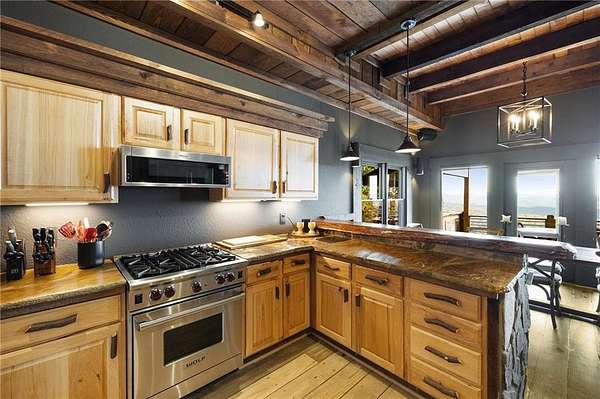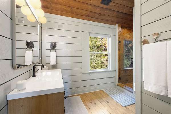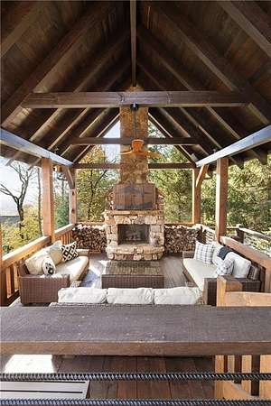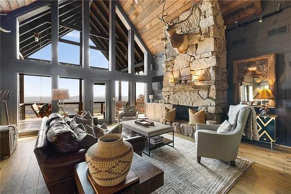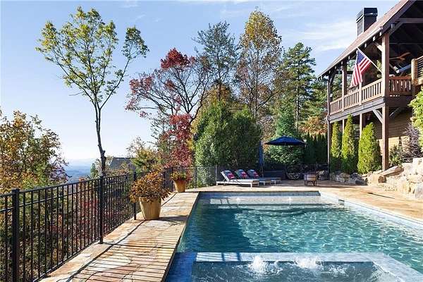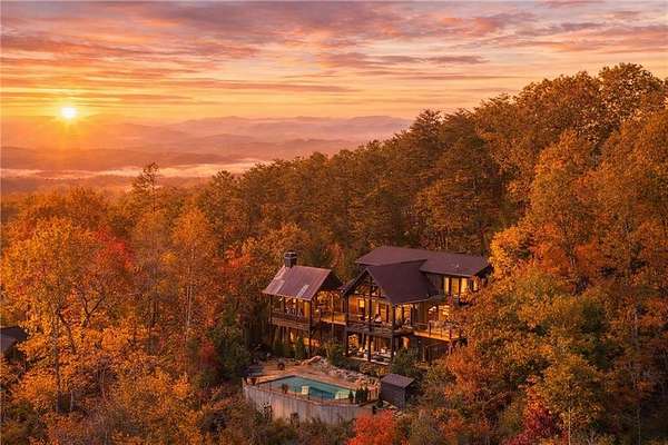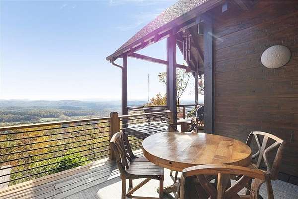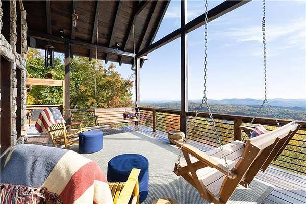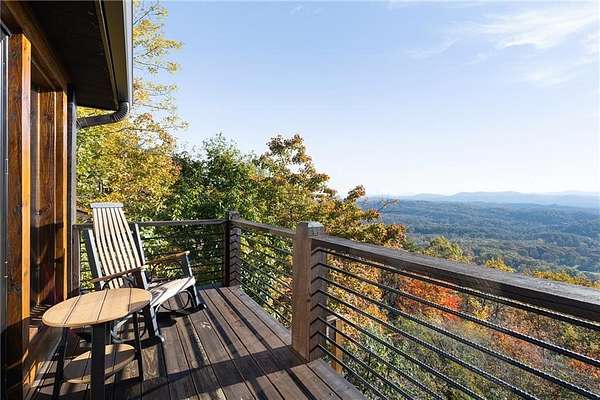 At over 2,300 feet, among the highest elevations in Fannin County, this Mineral Bluff retreat commands a vantage point that is exceptionally rare, even by North Georgia standards. The panorama is not simply a mountain view, but a sweeping composition of layered ridgelines receding endlessly to the horizon, creating one of the most extraordinary long-range vistas the state has to offer. Mornings unfold above the clouds, with mist settling into the valleys below as light moves across the mountains in soft succession. It is less a backdrop than a living spectacle, and unquestionably the defining feature of the property. The home itself has been thoughtfully updated without sacrificing its mountain character. Newly lightened hardwood floors run throughout, while refined baluster detailing lends quiet architectural polish to the staircase. The main-level primary suite serves as a true sanctuary, anchored by a spa-like bath featuring a dramatic stone waterfall shower that rightfully claims its place as a design focal point. The floor plan is substantial yet comfortable, designed equally well for intimate retreat and effortless hosting. Upstairs, a private guest suite enjoys a fully renovated bath and its own balcony positioned to capture the morning light. The finished terrace level expands the home's livability with a fireside family room, wet bar, and two additional guest suites, including one outfitted with custom bunk beds, making the residence as well-suited for large gatherings as it is for quiet weekends away. The outdoor living experience is every bit as compelling as the interiors. Just off the great room, a generous vaulted outdoor living room functions as a true extension of the main living space, creating a seamless transition for year-round enjoyment of the extraordinary setting. Adjacent, the outdoor kitchen is positioned for easy entertaining, while a separate vaulted fireside outdoor room offers yet another distinct living space-equally suited to quiet mornings, evening cocktails, or gathering with guests against the mountain backdrop. Below, a covered deck overlooks the resort-quality pool and frames the view from yet another dramatic perspective. The newly built pool, complete with tanning ledge and integrated spa, brings a true resort sensibility to the property, with the layered mountain panorama stretching before you even while floating in the water. Practical considerations are equally rare and valuable at this elevation, including fully paved road access, ample overflow parking, and a whole-home generator. Offered fully furnished and move-in ready, the property presents a seldom-available combination of height, comfort, and visual impact. Four bedrooms, three and a half baths, resort-caliber outdoor living, and a mountain view of truly uncommon scale and beauty. Opportunities with this level of elevation and this magnitude of layered ridgeline vistas are exceedingly rare.