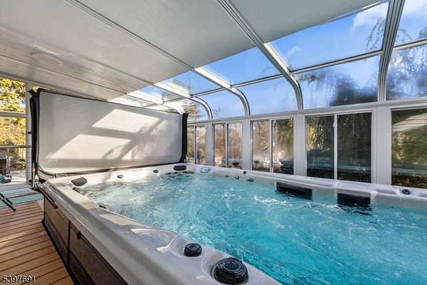 Welcome to 38 Larsen Road in East Amwell, a beautifully maintained home set on a picturesque, park-like property offering privacy, charm, and exceptional outdoor living. This spacious residence is filled with natural light and a warm, inviting atmosphere. The main level features a formal dining room, home office, bright eat-in kitchen, and a generous great room ideal for everyday living and entertaining. A full first-floor bath and main-level laundry add modern convenience. The second floor offers three well-appointed bedrooms and two full baths, including a comfortable primary suite with a spacious closet and dressing area. The third floor provides flexible space with a large storage area or potential nursery, plus an additional finished room perfect for a home office, studio, or possible fourth or fifth bedroom. A full unfinished basement and two-car garage offer ample storage. Step outside to your private backyard retreat, featuring a fenced yard that blooms like a botanical garden from spring through fall. Enjoy an inground pool with a pool house including a bar sink, changing room, and outdoor shower. A covered patio with a year-round swim spa, serene pond, and fenced play area complete the outdoor space. Notable updates include pool liner (2020), roof (2023), garage doors (2016), HVAC (2017), sump pump and French drain system (2017), sunroom addition, fresh interior paint (2025), and a full landscaping clean-up completed November 2025.