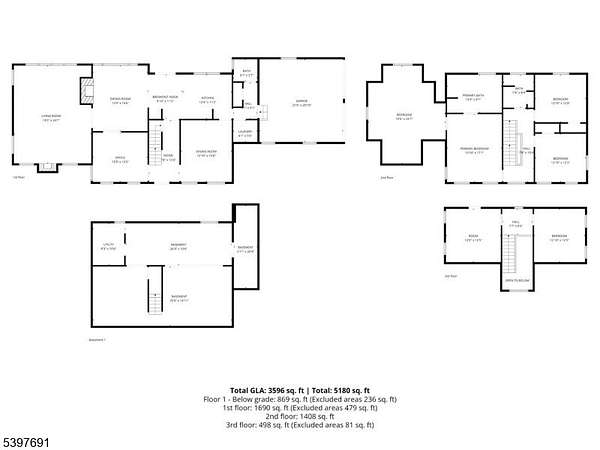 - Basement, Bathroom x 3, Bedroom x 4, Dining Room, Kitchen, Living Room