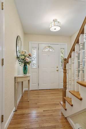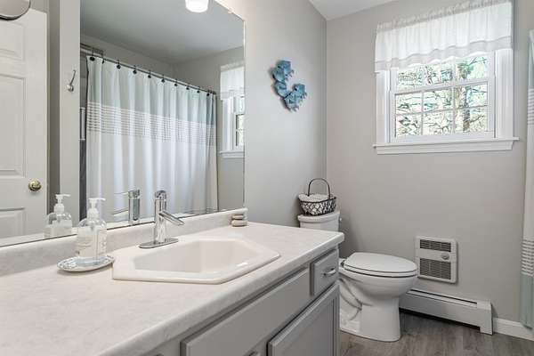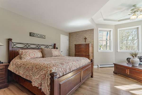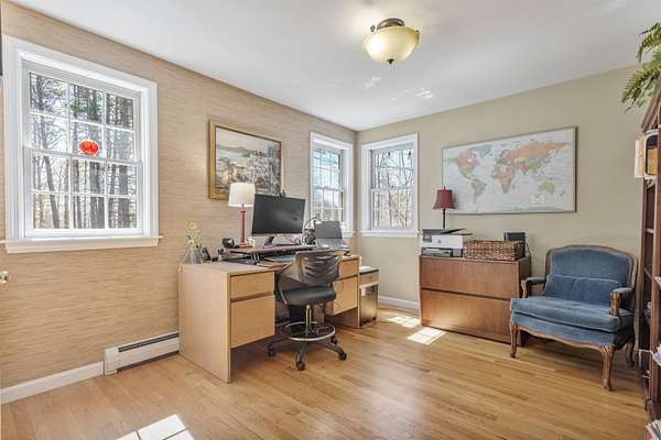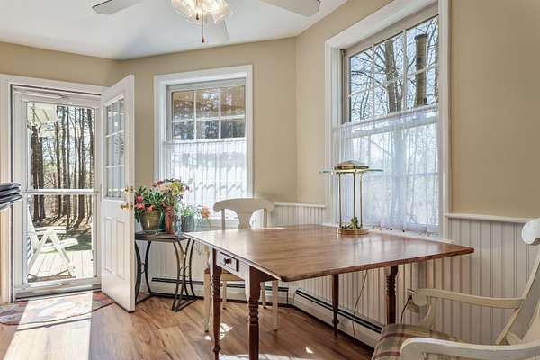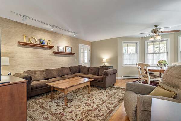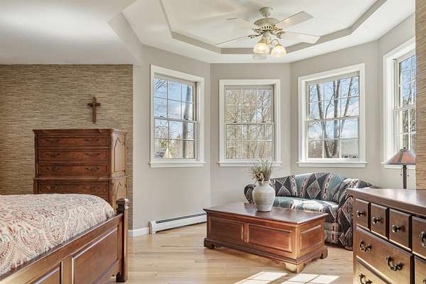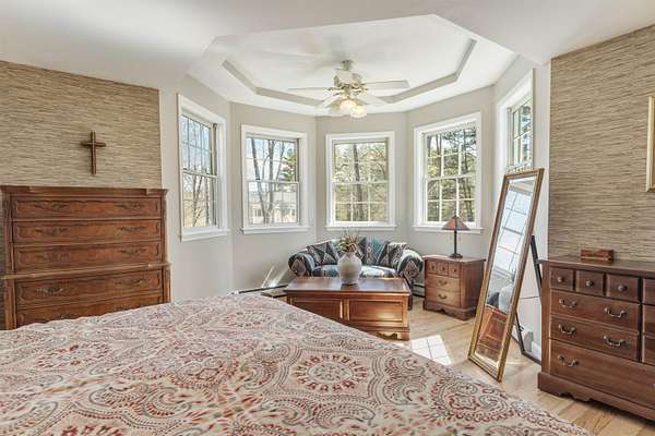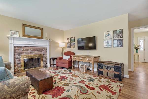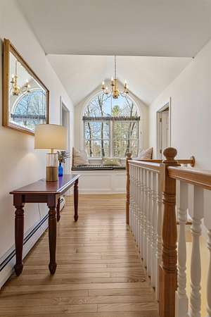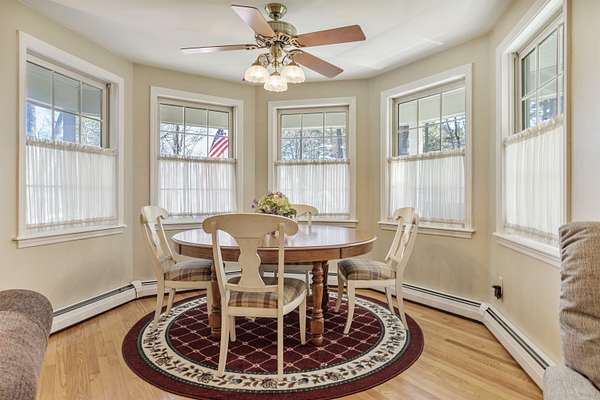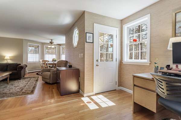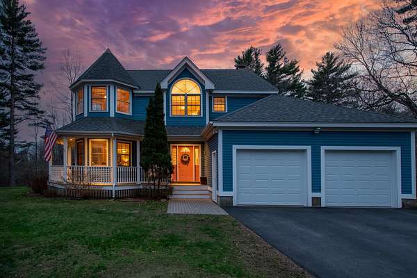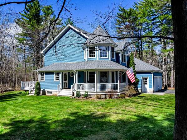 Picture yourself relaxing on the wraparound porch, taking in the peaceful surroundings. This 4 bedroom, 2.5 bath home blends classic design with a modern flair, offering warmth, comfort, and a distinct design throughout. A striking turret anchors the home's architecture, creating a beautiful focal point and uniquely shaped interior rooms that add charm and visual interest. Offered for the first time, this meticulously maintained home features light-filled spaces and a flowing floor plan designed for both gathering and quiet retreat. The centrally located kitchen opens to a lovely sitting room with a wood burning fireplace, perfect for everyday living. Step out to the back deck and enjoy the private yard! The main level also includes a versatile living room, dining area and home office, along with a convenient 1/2 bath, laundry and mud room. The office space could be a dining room, play area, private entry office, or kitchen extension- whatever suits your needs! Upstairs, the spacious primary suite offers a sitting area, tray ceiling, 2 walk-in closets, and a generous bath. 3 additional bedrooms are set off the hallway, lighted by an oversized window and custom bench seat. Gleaming hardwood floors run throughout, adding warmth and continuity. The lower level expands your options with a 28 x 17.5 finished room, high ceilings, ample dry storage and future bathroom roughed in! Recent updates include a new furnace, heat pump water heater, garage doors, chimney cap, exterior house painted and new driveway. Ideally located near Great Bay, Portsmouth, major highways, and shopping, this home offers both convenience and timeless appeal. There is no association and covenants are not in force. Showings begin Friday May 1, by appointment only.