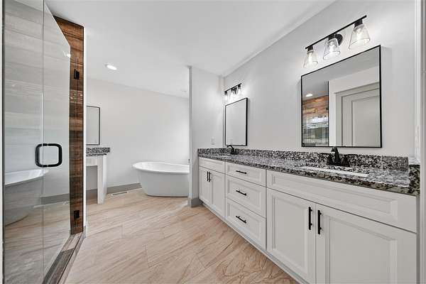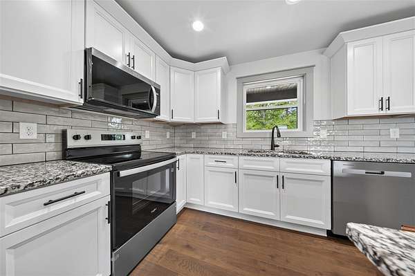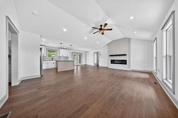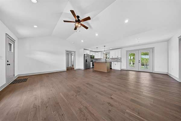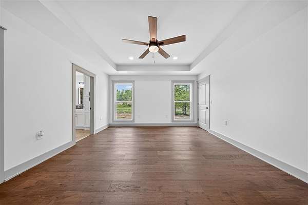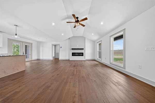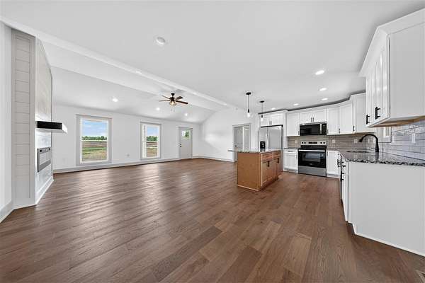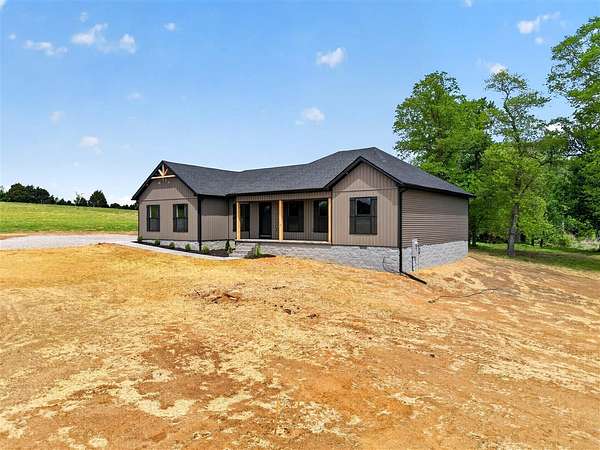 Welcome to this stunning new construction that truly stands out from the rest. This 1677 +/- 3 bedroom 2 bath home is designed with high end finishes throughout, this home offers the perfect blend of style, comfort, and functionality. Step inside to an open, split floor plan featuring beautiful hardwood and tile flooring, elegant trim work, and a warm, inviting fireplace. The kitchen is a showstopper with granite countertops throughout, an island, and a layout ideal for both everyday living and entertaining. The primary suite is a private retreat, complete with a luxurious tile shower, separate soaking tub, double vanity, a separate makeup vanity, and not one, but two closets. Every detail has been carefully selected, from the well coordinated color palette to the quality craftsmanship found in every room. Situated on approximately 1.64 acres in the county, the property offers a peaceful setting with plenty of space to enjoy. The backyard is perfect for relaxing or hosting, featuring a covered porch with beautiful stamped concrete and a patio! Additional highlights include a two car garage, a generously sized yard, and so much more! This is a home you don’t want to miss.