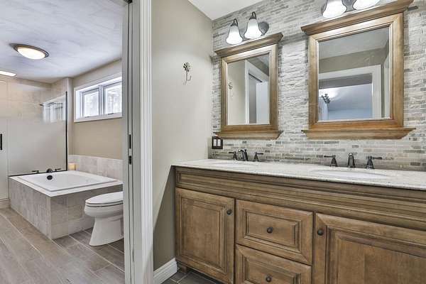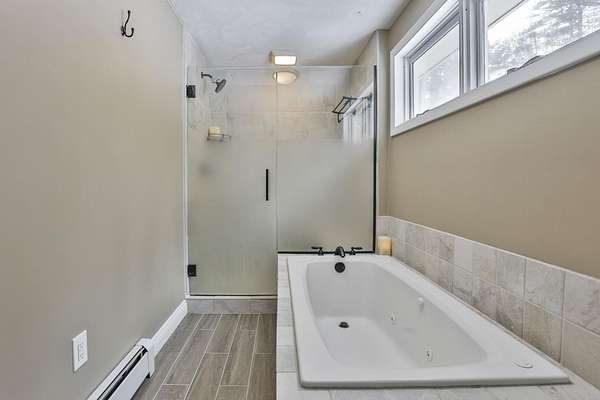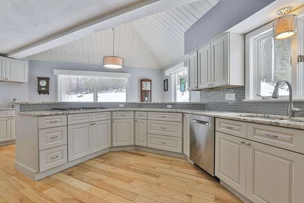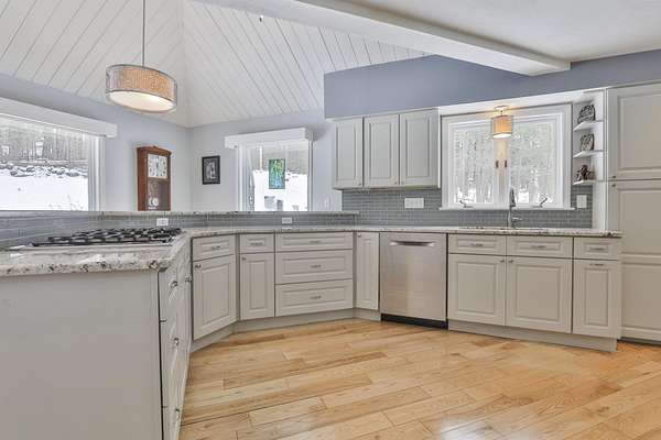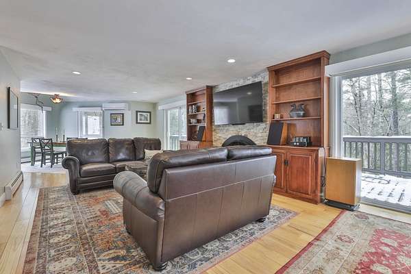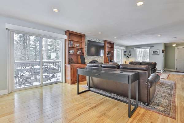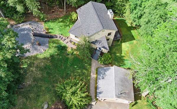 Tucked into a tranquil, wooded setting, minutes from Amherst Village & 101, this distinctive contemporary combines privacy, beauty & convenience. Known by its owners as "the treehouse," the home feels immersed in nature; whether enjoying the back deck surrounded by mature trees, listening to the seasonal babbling brook, or taking in vibrant fall foliage. Inside, the bright, open-concept main level is designed for easy living & entertaining. The gourmet kitchen has granite counters, a gas cooktop with retractable downdraft vent, double ovens, stainless appliances & a wet bar. Bamboo & maple flooring, pocket doors, a gorgeous stone fireplace, and abundant windows provide warmth & architectural interest. The spacious, sun-soaked primary suite includes walk-in closet, separate office, and an ensuite bath with dual sinks, tiled shower & jetted soaking tub. The finished lower level includes 2 bedrooms, full bath and laundry; flexible living space with walk-out access to the backyard. Highlights include mini-splits for efficient heating/cooling, hardwood & tile flooring throughout, large attic for storage & a detached 2-car garage with extra parking. The beautifully maintained lawn, lilac bushes & Japanese maple complete the setting. Located close to hiking trails, Baboosic Lake, restaurants, shopping, and commuting routes to Nashua & Manchester; offering a rare combination of privacy, style, and accessibility. A truly inviting home that is special and serene. OH Sat 10-12 & Sun 1-3
