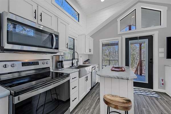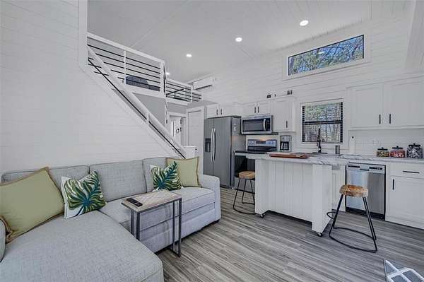 This beautifully designed fully furnished 1-bedroom tiny home lives larger than expected, comfortably accommodating 6–8 guests—making it ideal as a vacation home, Airbnb investment, or weekend getaway. Inside, you’ll find a modern open-concept layout featuring a full kitchen, spacious bathroom, and tankless water heater, providing all the comforts of home in a thoughtfully designed space.
