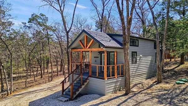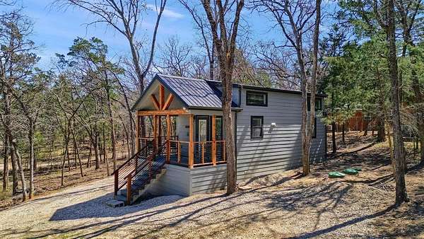 Discover the perfect blend of luxury and nature with this stunning tiny home retreat near Lake Texoma and just minutes from Mill Creek Marina. Nestled among mature trees in the scenic hills, this property offers a peaceful escape while still being close to boating, fishing, and outdoor recreation.