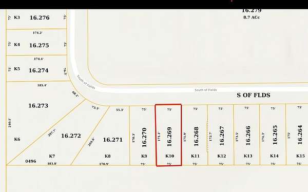 Hwy 589 South to Bellegrass, turn right on Bellegrass Blvd and stay straight to swimming pool and turn left, then right on S of Fields. Lot K-10 on left.