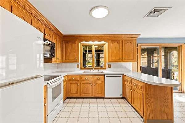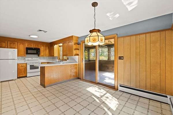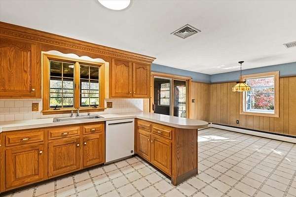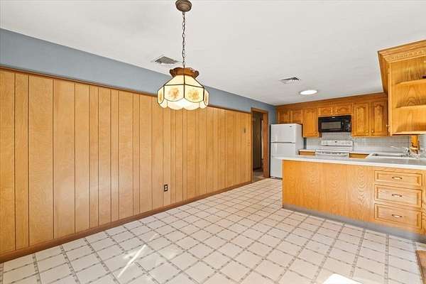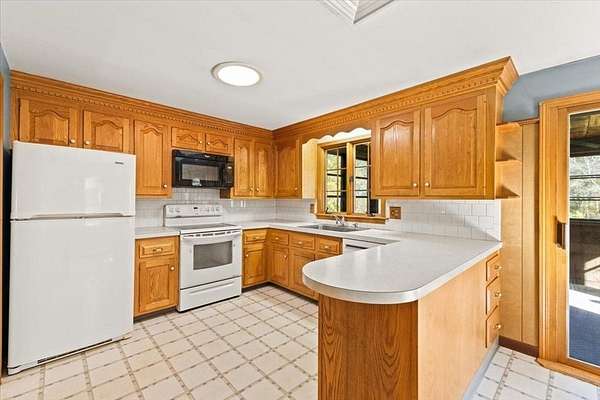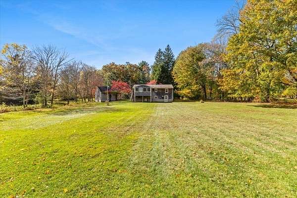 Welcome to 38 South Washington Street! Nestled on nearly 3 acres, this charming 3-bedroom Raised Ranch combines comfort, space, and versatility. Step up into the living room and you will find a beautiful bay window that fills the space with natural light, wall to wall carpet and a cozy gas fireplace-perfect for those cold winter nights. The kitchen offers ample cabinetry, a breakfast nook, and an eat-in area, ideal for both everyday meals and entertaining. Enjoy the tranquil setting from the screened-in porch overlooking the expansive back yard. Partially finished walk-out lower level provides a great space for a game room or entertainment area, complete with a bar, recessed lighting, carpet, and a convenient washroom-plus plenty of storage. A detached two-car garage adds even more value to this wonderful property. Gas heat, central ac, central vac and soon a new septic are added bonuses. With some sweat equity you can make this home your home. Offers due by 3PM on 10/27.