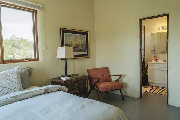 From center of Town follow Highway 522 north, through Hwy 150 Intersection, and through Hondo/Seco road intersection. From Arroyo Hondo market up hill to state road B-001. (~.5 mi.). Turn Left onto B-001 then follow curve to right up hill and Tres Lomas sign. At next Y intersection, stay left and follow up and over small hill on Tres Lomas Road. House on left after curve. See sign.