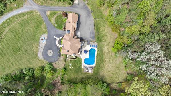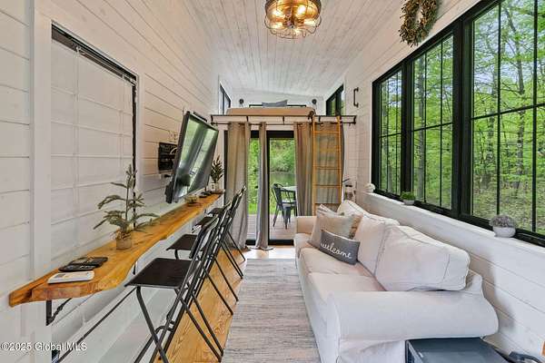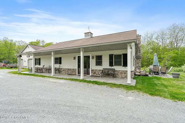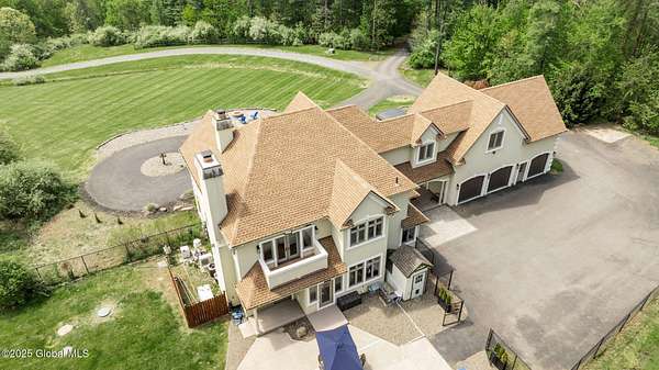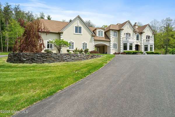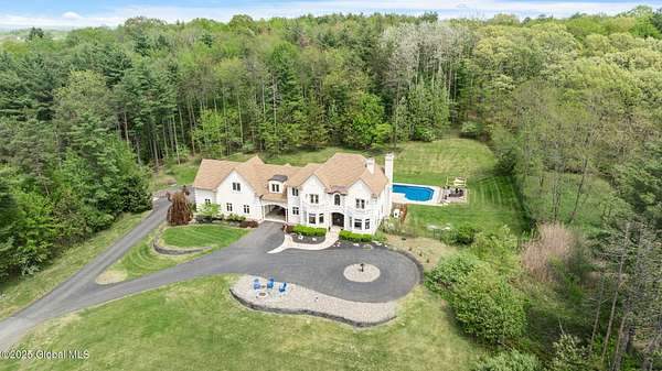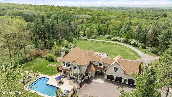 Experience luxury, privacy, and breathtaking views on this 134-acre estate-perfectly timed for peak fall foliage! Enjoy sweeping skyline vistas of the Catskill Mountains, 4 stocked ponds, scenic trails, a saltwater pool, barns, 2 waterfront tiny homes, and a guest farmhouse with a chef's kitchen and stone fireplace. The main home features an open layout, gourmet kitchen, 3 balconies, radiant floors, wine cellar, theater, and multiple fireplaces, with a lavish primary suite offering a private balcony, infinity tub, cedar walk-in closet, and steam shower. Located just 5 minutes to I-90, 20 minutes to Albany, and 2.5 hours from NYC or Boston. As a bonus, the property generates an estimated $300K/year in short-term rental income.