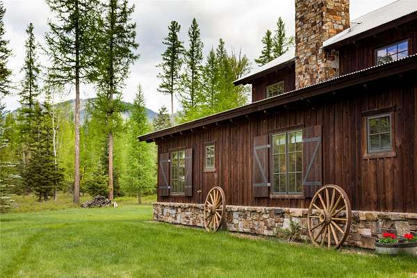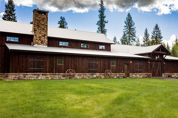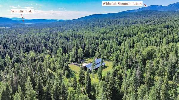Experience the harmony of history, luxury, and Montana wilderness. Stunning 3,654 sq ft home on 40 private acres just 5 minutes from downtown Whitefish on a paved road. This 3BD/3.5BA estate blends timeless craftsmanship with modern comfort in an unparalleled setting. Boasting repurposed timbers from Chicago's oldest office building and the historic Pend Oreille Lodge imbuing it with a story and soul that can't be replicated. The open-concept design features vaulted ceilings, a natural stone fireplace, and expansive windows with mountain and forest views. Gourmet kitchen, spacious en suite bedrooms, and a private primary suite with a spa-like bath. Office/flex space adds versatility. Enjoy peaceful outdoor living with trails, wildlife, and total privacy-yet close to Whitefish Lake, Whitefish Mountain Resort, and Glacier National Park. A rare opportunity to own a timeless Montana retreat. **Short Term Rentals are dependent on a Flathead County short term rental permit.