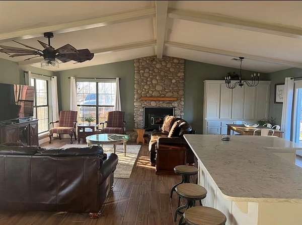Bluebell Properties is a rare Southern Oklahoma retreat blending natural beauty, income potential, and exceptional accessibility-just under half a mile from I-35 at Exit 40, minutes north of Ardmore. Framed by sweeping views of the Arbuckle Mountains. The landscape is alive with wildlife-deer, turkey, geese, wintering pelicans, and even the occasional eagle-creating a serene, ever-changing backdrop. At the heart of the property, 380 Bluebell is a beautifully renovated 3,817 sq ft residence thoughtfully divided into two private units, each featuring 3 bedrooms, 2 bathrooms, and full kitchens. With its blend of brick, stone, and log siding, the home offers rustic charm alongside modern comfort. Guests enjoy an in-ground pool, lakeside fishing, firepit gatherings, and peaceful privacy-ideal for short-term rental flexibility, whether hosting separate families or larger groups. Bluebell Properties has welcomed everything from family reunions and retreats to honeymooners and holiday gatherings, as well as visitors exploring the Arbuckles, Turner Falls, Lake Murray, and Sulphur. While not currently operated as a formal venue, the setting has already hosted weddings and presents outstanding potential for a future event destination. A truly unique investment opportunity where scenic tranquility meets proven income and endless possibility. Seller is open to include another well established STR bungalow as well as the entire lake, shop/barn/pens on 18 additional acres for a total of 23 acres. Please ask listing agent for details