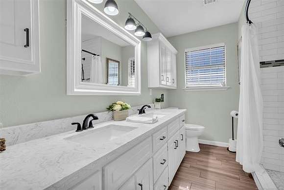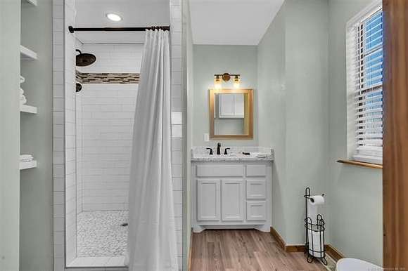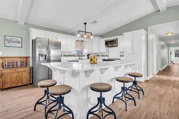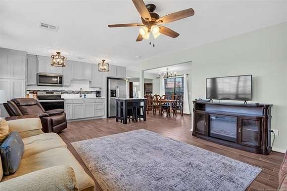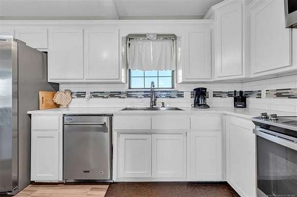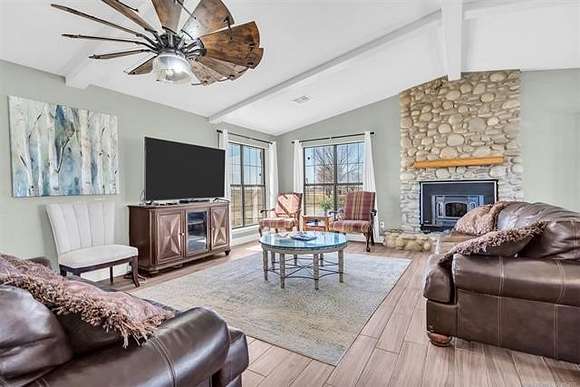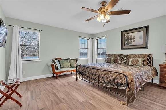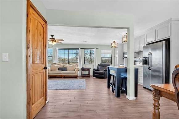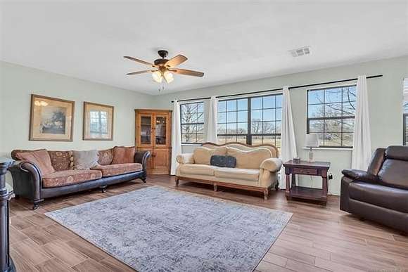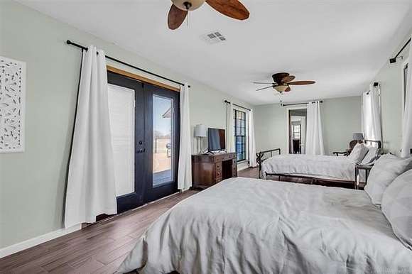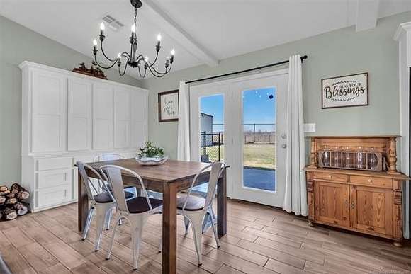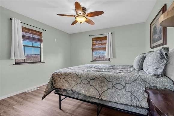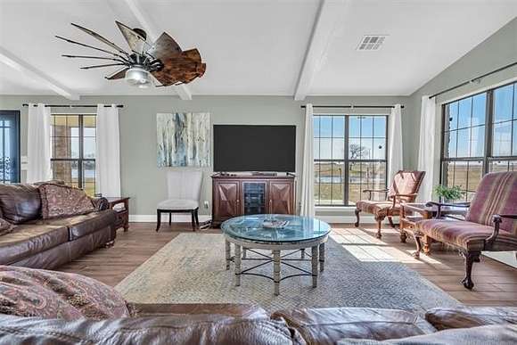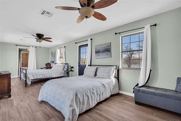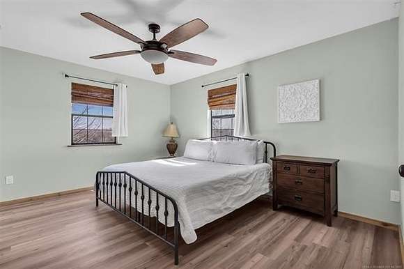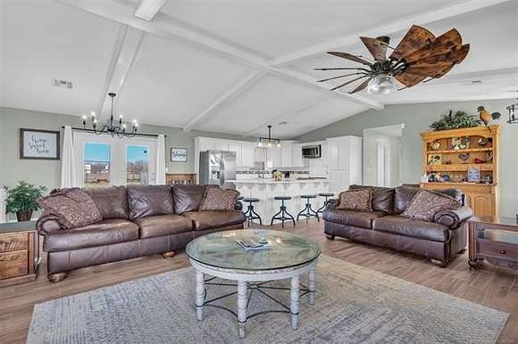 This completely remodeled property located on five scenic acres and is currently used as a commercial Airbnb property split into two sides, each featuring 3 bedrooms, 2 bathrooms, full kitchens, and living areas, and utility rooms, while overlooking a beautiful 8 1/2 -acre pond with stunning views of the Arbuckle Mountains, with access to the pond that attracts local wildlife like deer, turkey, and geese. The exterior has been enhanced with brick and rock, and the interior boasts refaced and added cabinets, new flooring, three updated tile showers, new quartz countertops, and fresh paint, along with luxurious upgrades including a whirlpool tub and tiled showers; additional amenities include an inground pool, a fenced backyard, and a shop building with covered parking, making this property ideally located near Turner Falls and Ardmore for those seeking both a country lifestyle and convenient access to local attractions, with the versatility to be used as a personal home with vacation rental potential, a large personal residence, or to continue its Airbnb operation, with all furniture negotiable. Don't miss out on this one! You've got to see it in person to truly appreciate all it has to offer