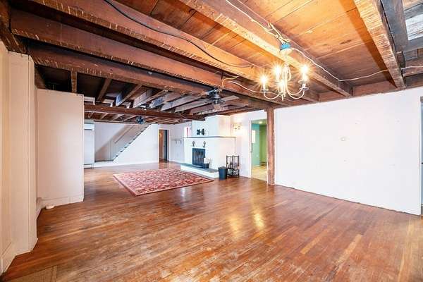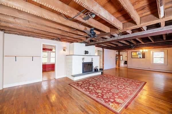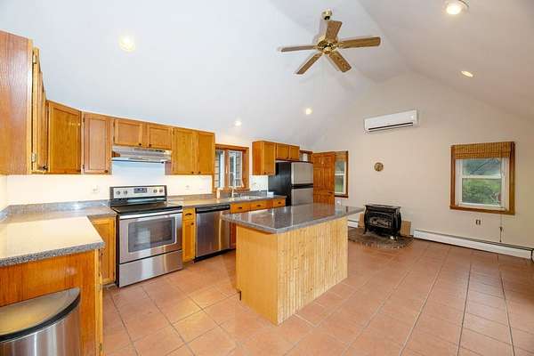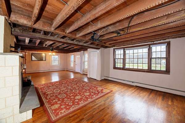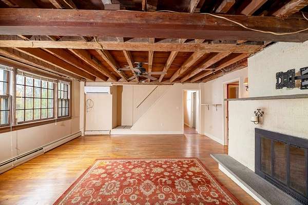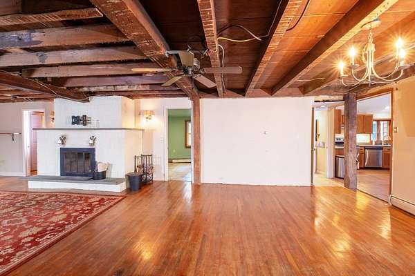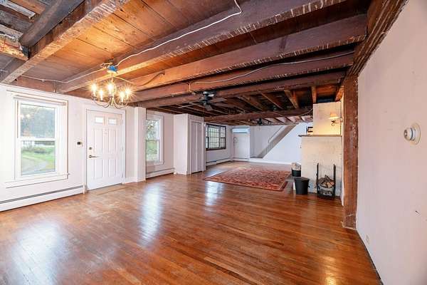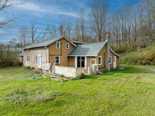 Set back on 3 acres with a wooded backyard, this spacious home combines comfort and charm. The spacious kitchen features warm wooden cabinetry, a central island, stainless steel appliances, and beautiful terracotta floor tiles under a vaulted ceiling, opening to an enclosed patio perfect for morning coffee or evening entertaining. The expansive great room showcases exposed beams, wood floors and a cozy wood-burning fireplace, adding warmth and character. Three bedrooms, a full bath, convenient laundry, and additional workshop or hobby space complete the first floor, while upstairs includes a 4th bedroom and a large living room. Updated mini-split systems provide efficient heating and cooling. Just 20m from Ithaca or Owego, this inviting home provides space, character, and a welcoming atmosphere.