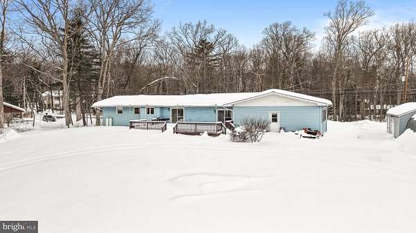 Not just a backyard, this ranch home comes with 6.6 ACRES and NO HOA. Move in ready home with hardwood floors and fresh paint throughout, and a bright and open cathedral ceiling in the living room/dining area overlooking the large deck. The spacious bonus family room with beautiful woodwork propane fireplace and a second set of sliding doors to the backyard views. The full basement can be finished into extra living space or workshop. Pick the fruit trees in your backyard, and enjoy fires off the huge deck perfect for entertaining. Plenty of space for cars, boats, toys and parking with an oversized paved driveway, 2 car attached heated garage and 1 car detached garage/shed, and a whole house generator. Imagine owning a property like this-and still being close to everything. Minutes from Route 80, stores, restaurants, the hospital and convenience. If you've outgrown neighbors and noise, this might be your next move. Ask how to receive a $2,000 lender credit towards closing costs or lowering your interest rate!