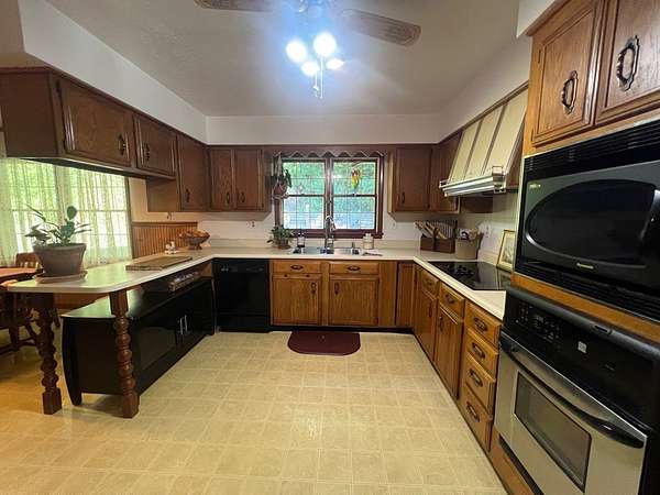 Sprawling Brick Ranch - Conveniently Located Between Pikeville & Prestonsburg! Welcome home to this spacious 4 BR, 2 bath brick ranch offering comfort, character & convenience. Inviting foyer leads you to a thoughtful layout and timeless charm. Kitchen with bar & cozy breakfast nook, flowing seamlessly into the formal dining room. You'll also find a formal living room plus a warm, welcoming den w/fireplace. Gleaming hardwood flooring adds elegance throughout. Covered front & rear porches overlooking the beautiful yard. Lg. workshop, chicken coop, ample storage space. New roof in 2024, new a/c handler & duct work. Whole house generator!!