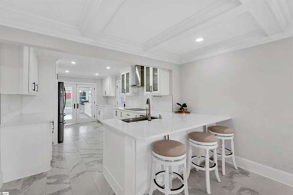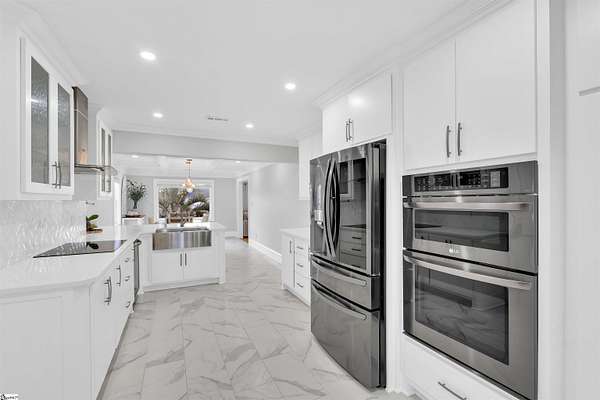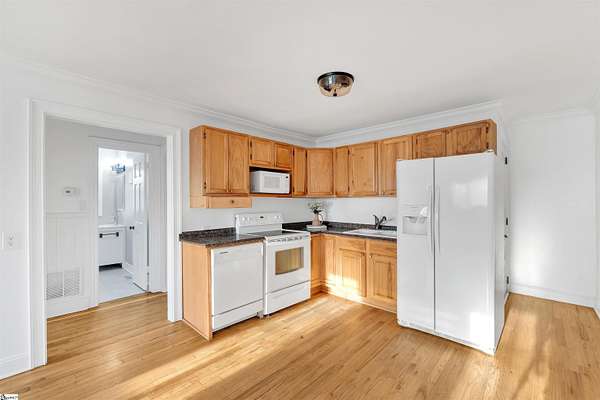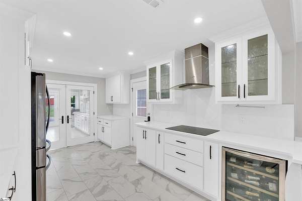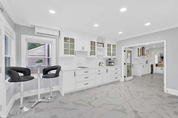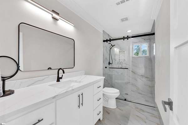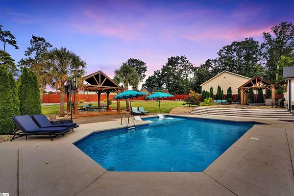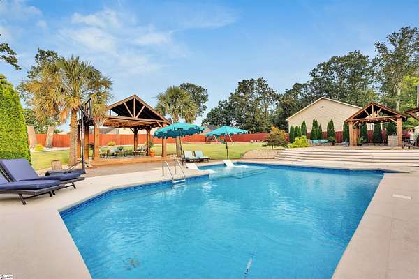 Welcome to 380 Forrester Drive, a private 2.25 acre estate in the Mauldin area, less than 15 minutes from downtown Greenville, that offers an exceptional blend of luxury, versatility, and opportunity. With two separate dwellings plus a 2,400+ sq. ft. workshop, this property is perfect for those seeking space to live, work, and entertain in style. The main home, a beautifully renovated brick ranch, features custom craftsmanship throughout. The inviting foyer flows into open living and dining spaces and a stunning chef's kitchen with bespoke cabinetry and premium finishes. Enjoy morning coffee in the sunroom or step onto the newly refurbished deck overlooking your private backyard retreat. The spacious primary suite offers a true escape with an electric fireplace, while three additional bedrooms, a walk-in laundry, and a full bath complete the main level. The fully finished basement provides exceptional flexibility, ideal as a fifth bedroom, home gym, or recreation space, with a half bath and the option for a second laundry. The detached two-car garage includes a charming two-bedroom apartment, perfect for guests, family, or potential rental income, complete with a fully tiled bathroom, kitchen, and fresh updates. Outside, the property shines with a sparkling in-ground pool, 2 covered verandas, an outdoor bar/kitchenette, all set within a beautifully landscaped and fully fenced estate. For entrepreneurs, builders or creatives, the 2,400+ sq. ft. workshop is a rare find. Fully equipped with power, water, HVAC, an office, and a full bathroom, it can accommodate projects of any size. This is more than a home, it's a lifestyle. With its unique combination of elegance, functionality, and opportunity, 380 Forrester Drive is truly one-of-a-kind.