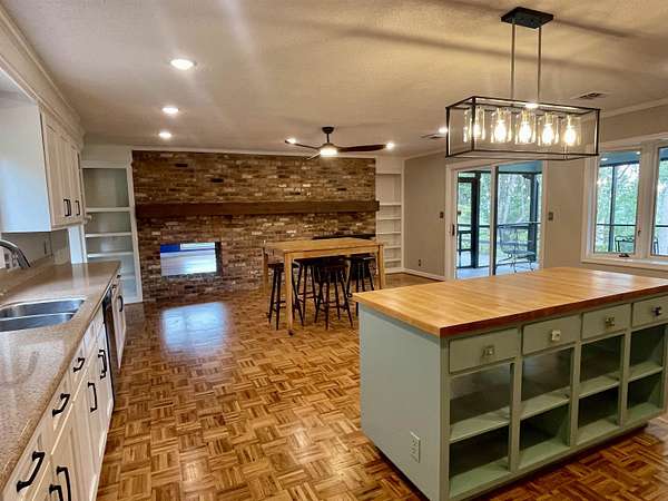 - Attic Stairs-Permanent, Bookcases, Ceiling Fan, Ceilings-Blown, Multiple Fireplaces, Open Floor Plan, Second Living Quarters, Smoke Detector, Split Bedroom Plan, Walk in Closet