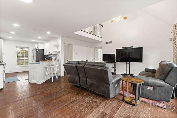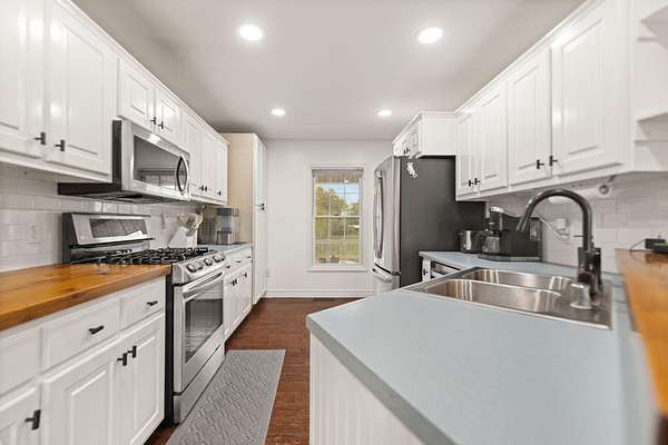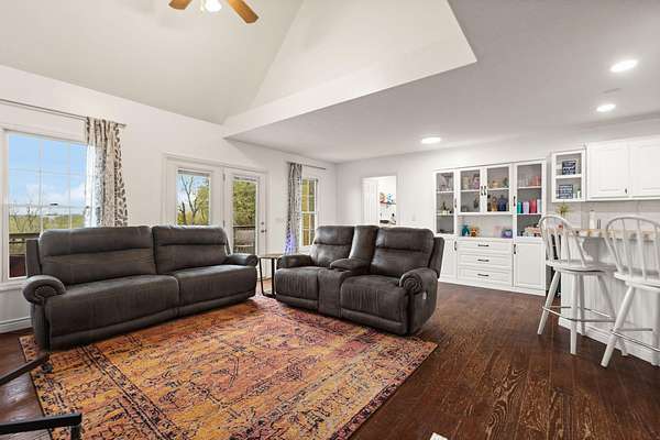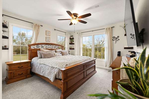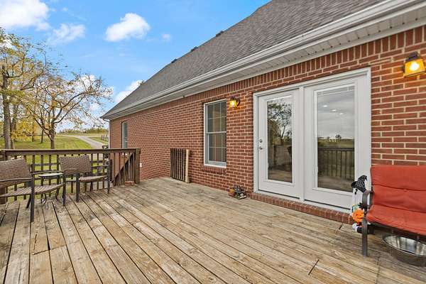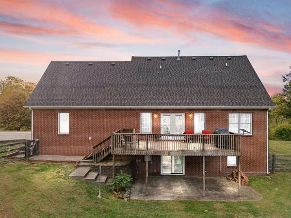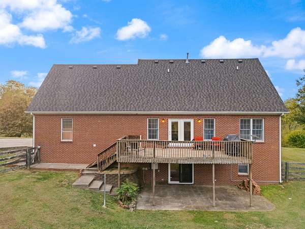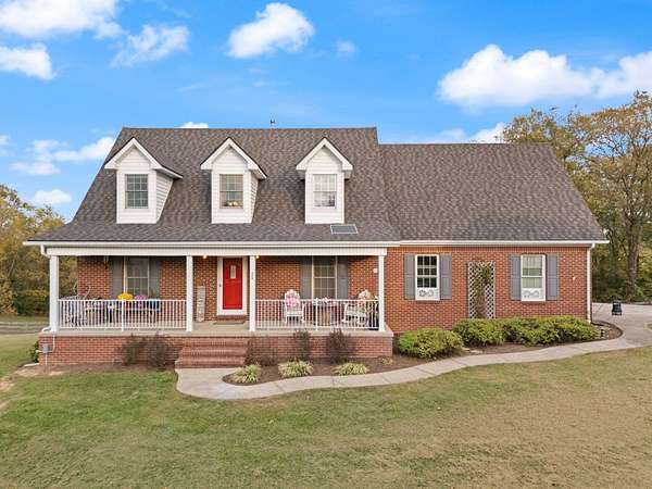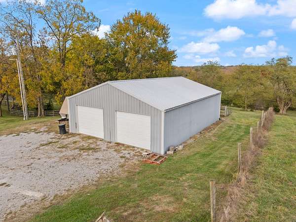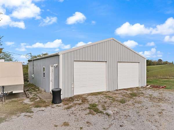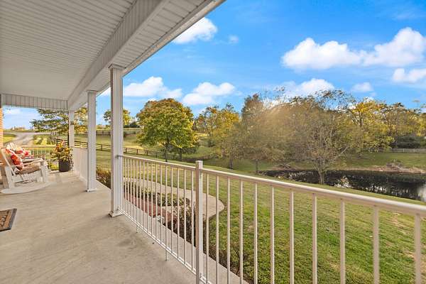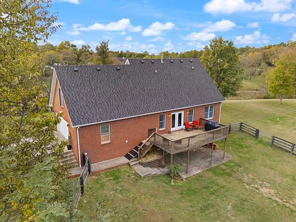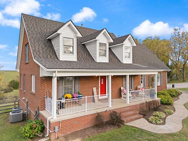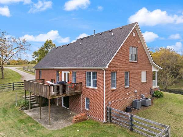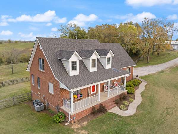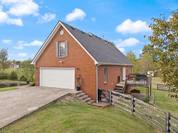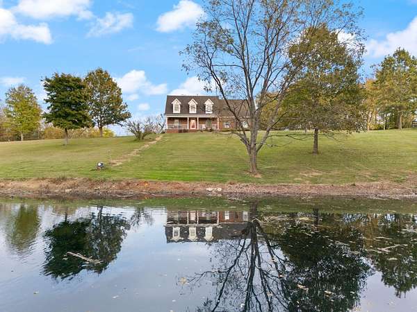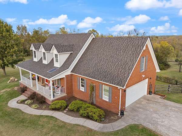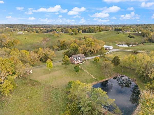 Welcome home to Frankfort, Kentucky! Conveniently located off I-64 and Highway 151, this rural retreat awaits you. Enjoy your privacy, raise some chickens in the coop, and fish in your own pond, while being close enough to the city to enjoy shopping, dinner or a night out. This lovely brick Cape Cod home is perfectly nestled into 7.99 peaceful acres at the end of a private driveway. As you approach, you'll pass rolling pasture, and a spacious 30x40 heated, two-bay workshop ideal for hobbies, storage, or your next big project. You'll spend mornings with your warm beverage on the front porch overlooking your own pond and relaxing evenings casting a line. Step inside to a warm and inviting 3-bedroom, 3.5-bath home with a first-floor primary suite featuring an en-suite bath. Kick off your shoes in the convenient entry into the utility room from the 2-car garage. The kitchen includes a breakfast bar and opens to the living room, so a conversation is never missed while entertaining friends and family. Guests will appreciate the privacy of the half bath just off the main living area. Upstairs, you'll find a full bathroom, two spacious bedrooms, one of them featuring a bonus room perfect for an office, playroom, or study. The full, finished walk-out basement includes another full bath, tiled floor and a patio just outside the door, offering endless possibilities for additional living space, recreation, entertaining, or storage. The HVAC and water heater are concealed in a storage area in the basement. Step out back on the wooden deck to take in the peaceful, country views. The acreage is fenced and ready for animals, gardening, recreation, or simply relaxing and enjoying the open space. Recent updates include a roof replacement in 2024, gas furnace replacement in 2025, paint, pond aeration added, new stair treads to basement. This property truly has it all! Enjoy the privacy, functionality, and natural beauty, all within convenient reach of the nearby city amenities. Whether you're seeking a homestead, hobby farm, or private retreat, this is the home you've been waiting for!
