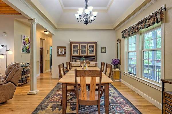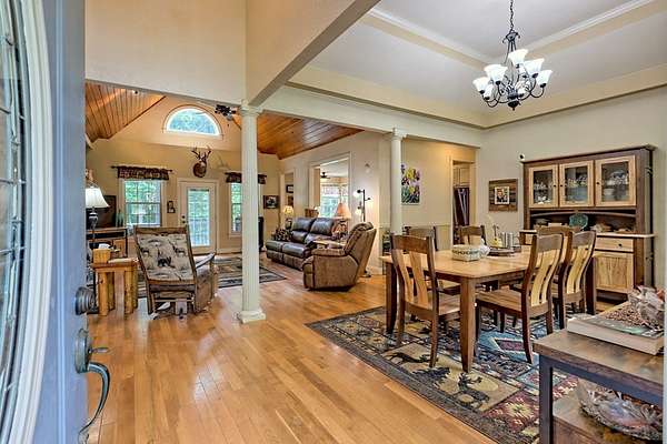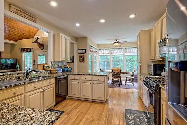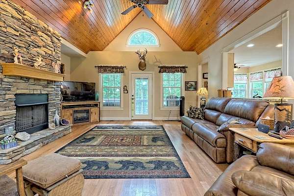 Welcome home to this stunning 4 bedroom, 3.5 bath family retreat perfectly tucked away on a quiet cul-de-sac, just minutes from town! Offering the ease of main level living, this beautifully maintained property combines comfort, space, and thoughtful upgrades throughout. Step inside to an inviting open concept living area featuring gorgeous wood floors, soaring wood cathedral tongue-and-groove ceilings, and a striking stacked rock fireplace that creates a warm, cozy focal point. The interior has been freshly painted, giving the home a bright and updated feel. The kitchen is designed for both everyday living and entertaining, complete with granite countertops, stainless steel appliances, and all the luxuries you'll need to move right in. A convenient main level laundry room adds to the home's functionality. The fully finished basement expands your living space even further, offering a large second full kitchen, a spacious great room with its own fireplace, plus a private one bedroom, one bath suite perfect for guests, extended family, or multi-generational living. Upstairs, above the garage, you'll find a completely finished bonus room ideal for a 5th bedroom, playroom, home office or fitness room. Outside, the property truly shines. Enjoy peaceful mornings and relaxing evenings in the charming gazebo or on the multiple covered porches. The fully fenced in yard is perfect for kids and pets and offers two additional storage buildings (one with power). Low maintenance vinyl siding, NEW roof, NEW gutters, and NEW zoned HVAC system provide peace of mind for many years to come. To top it all off, this home includes a 6-year transferable home warranty, adding extra confidence for the next owner. With its spacious layout, thoughtful money saving upgrades, and serene yet convenient location, this property makes a truly fantastic family home. Don't miss your opportunity to make it yours!
