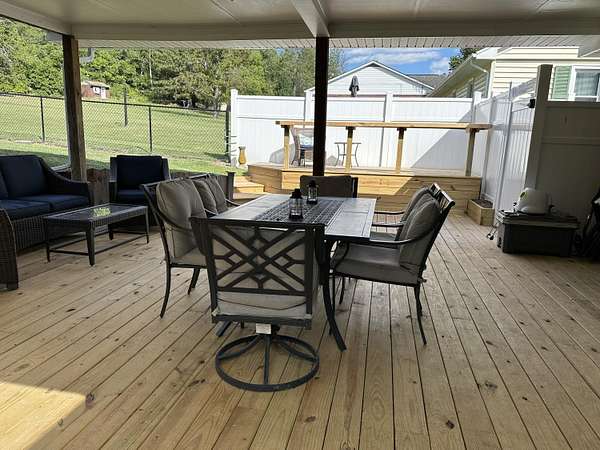 Renovated midcentury tri-level situated on a double lot located in the Huddleston Hills neighborhood in White Sulphur Springs. Large fenced in yard with an above ground pool, horse shoes, 2 outbuildings and a 24x30 covered deck. Perfect for entertaining family and friends. 3BR, 1.5 baths;