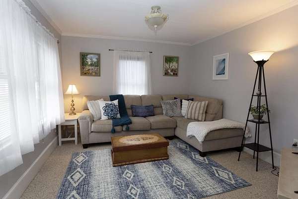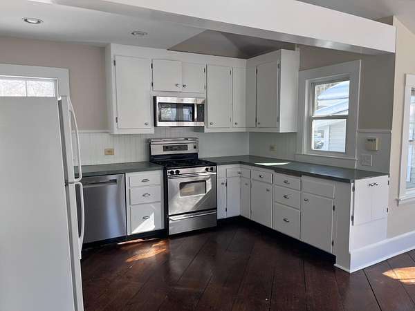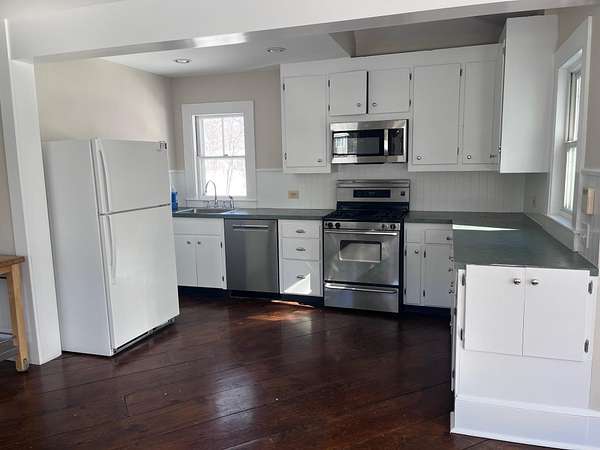 Enjoy Rye living in this annual rental at 380 Sagamore Road. This bright and cheery home has 3 bedrooms and 2 bathrooms. Enter the home into your large sunroom with warm exposed beams and ample windows providing lots of sunlight. This area also serves as a great mudroom with generous amounts of storage. The large kitchen has plenty of room for cooking up fabulous meals, entertaining guests or just relaxing in the sun. Just off the kitchen you'll find a cozy living room, perfect for any furniture arrangement. Rounding out the first floor is the full bathroom and bedroom. Head upstairs to the Primary bedroom that spans the width of the house and has a very sizable walk-in closet. The second bedroom includes a built-in desk as well as built-in shelving and drawers, perfect for storage and a home office. A 3/4 bathroom serves both bedrooms upstairs. The home boasts hardwood flooring and central air. This home is perfectly located, just minutes to the beach or downtown Portsmouth. Sorry, no pets. Tenant to cover the $40 fee for background and application fee. Available immediately. Photos show furniture from previous tenant but home will be rented unfurnished.