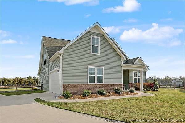 Welcome to your private retreat on 3.59 acres in a rare community that allows horses and offers the freedom, space, and tranquility so many buyers are searching for. Tucked away in a peaceful country setting yet still an easy commute to Fort Bragg, this property blends rural charm with everyday convenience. With low Hoke County property taxes, it delivers exceptional value without sacrificing comfort or lifestyle. Step inside to a beautifully designed home featuring a large owners suite with a dedicated seating area, perfect for unwinding at the end of the day. Just off the main living area, a beautiful sunroom invites you to relax in natural light year-round-an ideal spot for morning coffee, reading, or simply enjoying peaceful views of the property. The thoughtful layout continues upstairs with a spacious loft, ideal for a second living room, home office, playroom, or media space. Outdoor living shines here as well. A large screened-in porch extends your living space and lets you enjoy the outdoors in comfort throughout the seasons. The property is thoughtfully fenced into two separate areas, making it ideal for accommodating your future mini-farm, horses, or other animals while still preserving plenty of open space for recreation, gardening, or additional structures. Buyer closing-cost assistance is available with the preferred lender, offering even more value for your purchase.