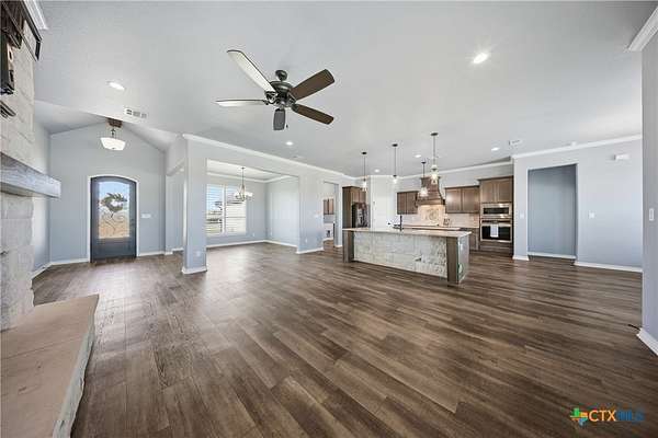 - Breakfast Bar, Built In Features, Ceiling Fans, Custom Cabinets, Double Vanity, Eat In Kitchen, Granite Counters, Kitchen Family Room Combo, Kitchen Island, Multiple Closets, Open Floorplan, Pantry, Separate Shower, Soaking Tub, Split Bedrooms, Walk In Closets, Walk In Pantry