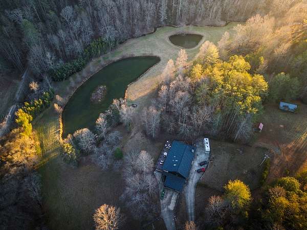 Discover an exceptional blend of comfort, space, and natural beauty in this 5-bedroom, 4.5-bath home set on 8.02 private acres, just 8 miles from downtown Blue Ridge. Enjoy peaceful rural living while remaining close to dining, shopping, and the charm of this mountain town. The interior features an impressive open-concept layout ideal for daily living and entertaining. The living room includes a cozy fireplace and flows into the open kitchen with a large island. Adjacent to the kitchen, the dining area offers expansive windows overlooking the forest and abundant natural light. Step outside to a spacious composite deck with views of a tranquil pond. This space is perfect for gatherings, grilling, or quiet relaxation. The main level includes three bedrooms, highlighted by a primary suite with a beautifully renovated modern rustic bathroom. Upstairs, two additional bedrooms are paired with well-appointed bathrooms for comfort and privacy. The basement level adds remarkable flexibility. It includes a reading room, a large home office, and a versatile bonus room suitable for a gym, photo studio, or additional living space. A generous entertainment area features a cozy iron stove, creating the perfect setting for hosting. A fully equipped laundry room provides everyday convenience. Outdoor living is enhanced by a covered terrace, offering a comfortable space to enjoy the mountain air year-round. The property also includes a two-car garage and a full concrete driveway extending to the road. Additional upgrades include an enhanced fireplace and a new roof for peace of mind. A scenic creek runs along the property line, and over eight acres of land provide ample space for recreation, expansion, and privacy. Offered below appraised value, this home presents a rare opportunity to own a spacious and well-appointed mountain retreat in an exceptional natural setting.