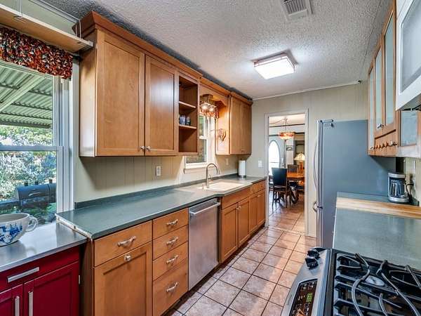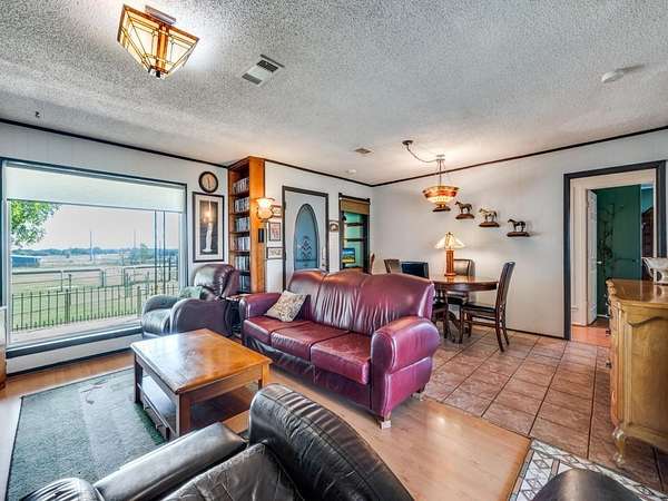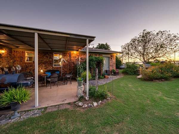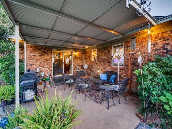 Prime 5-Acre Opportunity on Hwy 377! This charming 2-bedroom, 1-bathroom home sits on a beautifully maintained property with incredible commercial potential. Fantastic, landscaped areas create inviting outdoor living spaces, while multiple large, covered porches offer the perfect spots to relax and enjoy the lush gardens and mature greenery surrounding the home.