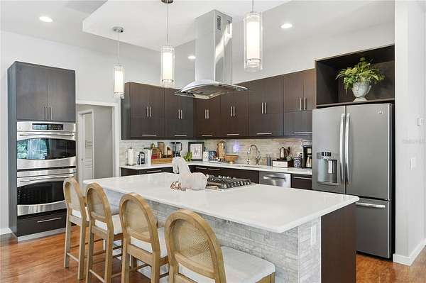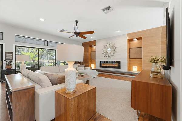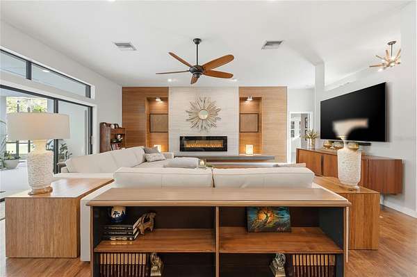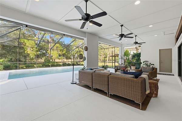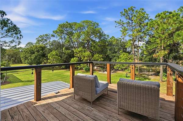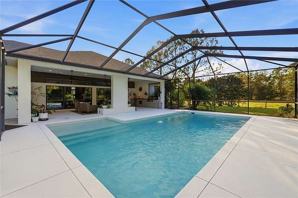 Tucked behind a private gated entry, this extraordinary 30+ acre estate delivers an exceptional blend of luxury, privacy, and purposeful design--perfectly suited for an equestrian farm, cattle ranch, or refined country retreat with no HOA. The property features a custom-built pool home, a 30'x40' barn with a furnished apartment and a detached climate-controlled building, all thoughtfully designed to provide flexible options for multi-generational living, guest accommodations, or income potential within a refined yet highly functional setting. The 2014 custom-built residence offers an open layout with a great room, dining area, spacious kitchen, split bedrooms, primary suite with an office, expansive laundry room, oversized lanai and a 2-car garage. The great room is a stunning focal point, highlighted by an electric fireplace with heat, set against a striking bamboo and tile feature wall with integrated lighting and outlets. Triple stacking sliding glass doors with transom windows flood the home with natural light while showcasing sweeping views of the pool and pasture. The well-appointed kitchen flows seamlessly into the great room and dining area and features custom cabinetry, quartz counters, stainless appliances, double ovens, walk-in pantry and a generous island with gas cooktop and seating for four. The dining area comfortably accommodates eight and opens to the lanai by an additional set of sliders, creating an effortless indoor-outdoor connection for entertaining. The primary suite is a luxurious retreat offering an office space with an 8-foot opening--easy to enclose for privacy. The suite is completed by 2 spacious walk-in closets with built-ins and a spa-inspired bath with a granite counter, dual sinks, a soaking tub, walk-in shower, and private water closet. Secondary bedrooms offer ample space and versatility, including built-in storage and a thoughtfully designed bunk room with integrated study and play areas and a walk-in safe closet. Step outside to the screen-enclosed lanai, where resort-style living takes center stage. Enjoy a salt-filtered, heated pool, an outdoor kitchen with a granite counter, grill, sink, cooktop, fridge, outdoor shower and a gas fireplace--perfect for year-round enjoyment. A backyard fire pit adds an additional gathering space under the stars. The estate continues with an impressive barn offering flexible use for equipment, hobbies, or easy conversion to horse stalls and a tack room, complete with an air-conditioned office. Above the barn, a beautifully finished one-bedroom apartment features a living room, full kitchen, stackable washer and dryer and a private deck overlooking the serene pasture--ideal for guests. The 14'x24' detached, climate-controlled building features a half bath and internet connectivity, making it ideal for a private studio, home office or she-shed. The land includes a cross-fenced pasture with a livestock pen, persimmon trees, greenhouse with electricity, RV electrical hookup and two chicken coops. Additional highlights; a new roof (2024), paved driveway, water softener, irrigation system, two tankless gas water heaters, generator connection and foam insulated panels for energy efficiency. Set in a tranquil country setting yet just 10 minutes from shopping, dining, schools and Bartow Executive Airport and centrally located between Tampa and Orlando, this remarkable estate offers the freedom to ride ATVs, store recreational toys and enjoy wide-open acreage without compromise.