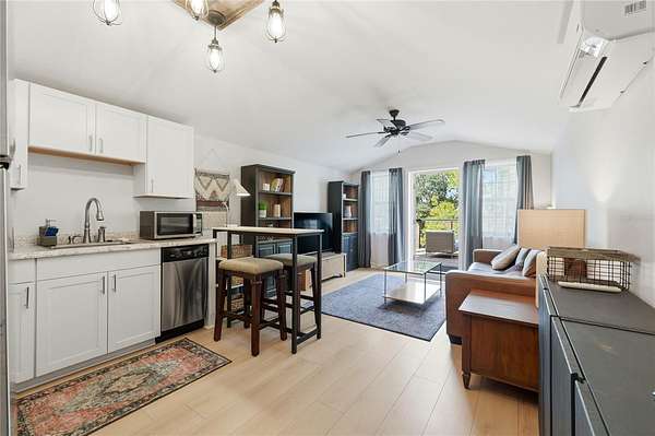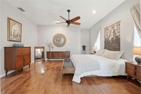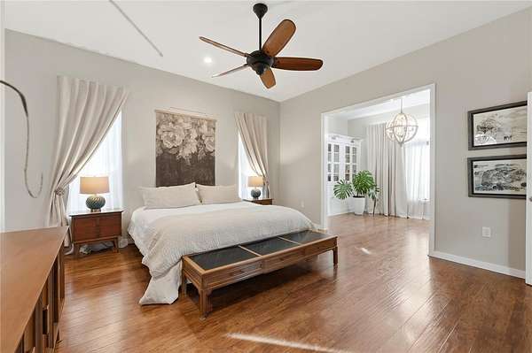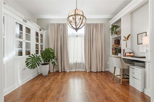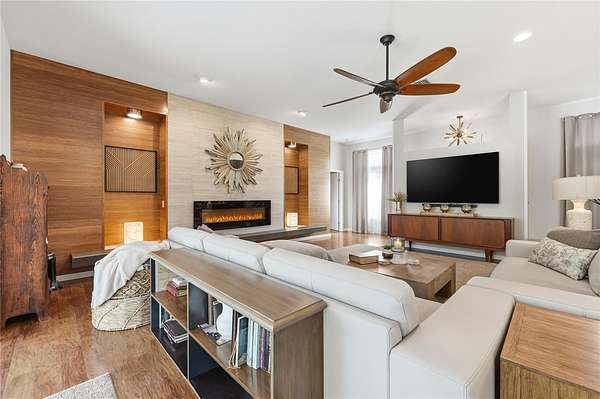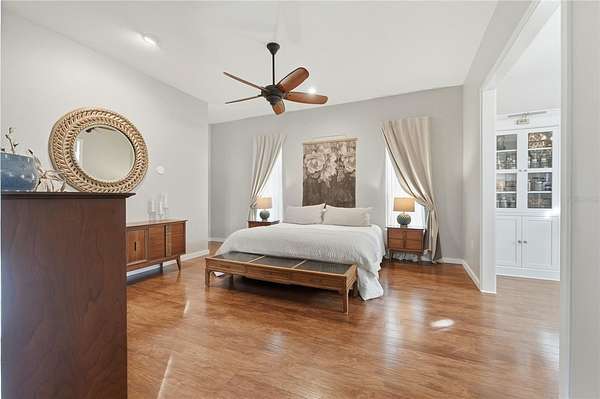 - Built-In Features, Ceiling Fans(s), High Ceilings, Kitchen/Family Room Combo, Open Floorplan, Primary Bedroom Main Floor, Solid Surface Counters, Split Bedroom, Stone Counters, Walk-In Closet(s), Window Treatments