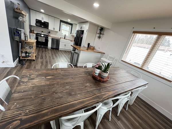 3 bed 2 bath farmhouse on over 4 acres completely remodeled! Brand new furnace and AC , windows, siding, flooring, bathrooms, kitchen and even the well... all new in 2023.Electrical and plumbing updated too! The 5 ft crawl space has a cement floor and could even become a mini man cave and is perfect for all of your storing needs. Huge main level bedroom with glass slider door could be used as the primary bedroom if needed. There is a massive primary suite on the upper level with walk in shower and over sized soaking tub.The walk in closet could become another bedroom.Kitchen has abundant cupboards and counter space. Very spacious dining area. Stamped concrete walkways ,new deck with built-in seating and a smokeless fire pit in backyard, Large laundry/mudroom with oversized closet/pantry.