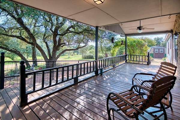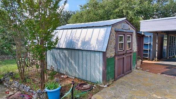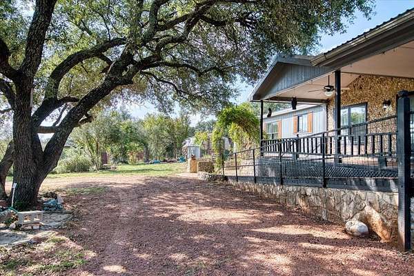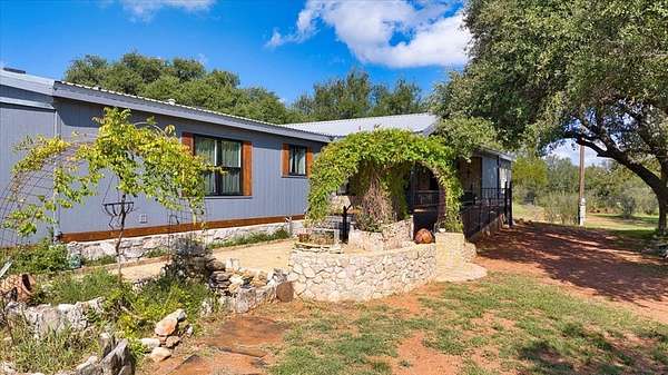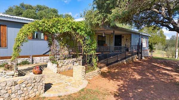Est $2,035/moTen acres densely wooded in live oak, cedar elm, persimmon and other native brush that offers privacy, observation of wildlife and country living. Well maintained 3/2 Palm Harbor home with integrated, self sufficient and private entry, 900 sq.ft. 1/1 apartment. Fireplace in living room. Metal roof, smart board exterior siding with windows accented with cedar stain trim, stone skirting. Shaded front porch. Attached two car carport. Numerous storage and weather protective sheds. RV hook-up Garden and meditation space with water fall. Concrete storm shelter. Cross-fenced for livestock management. Ag valuation keeps taxes low. Less than five minute drive to Mason.