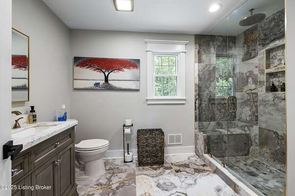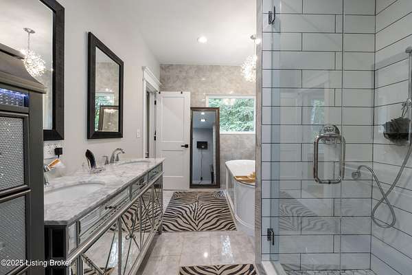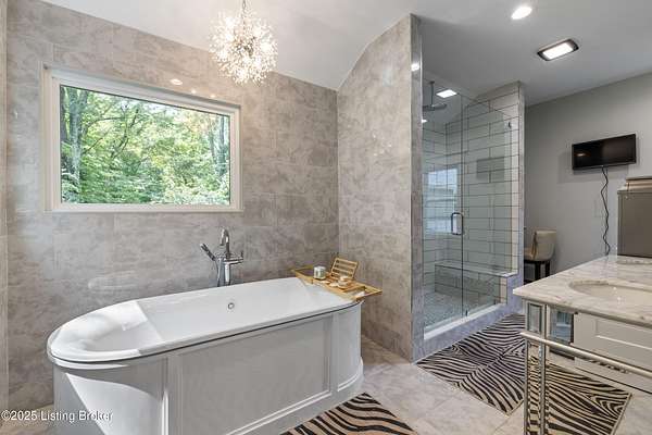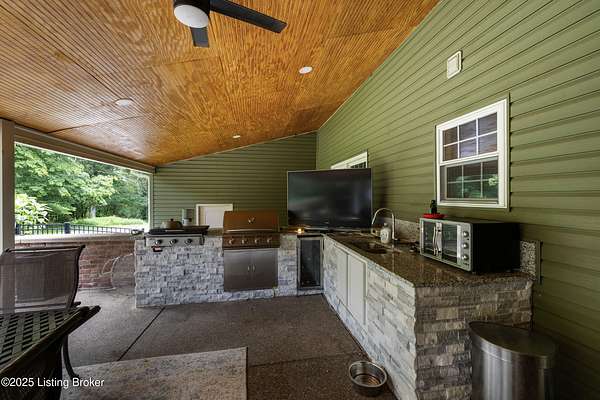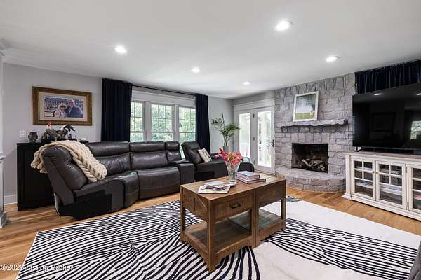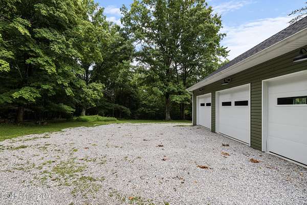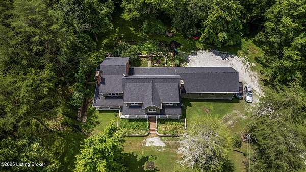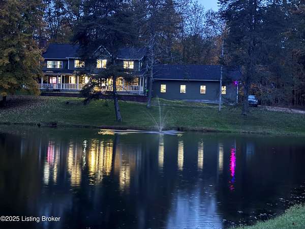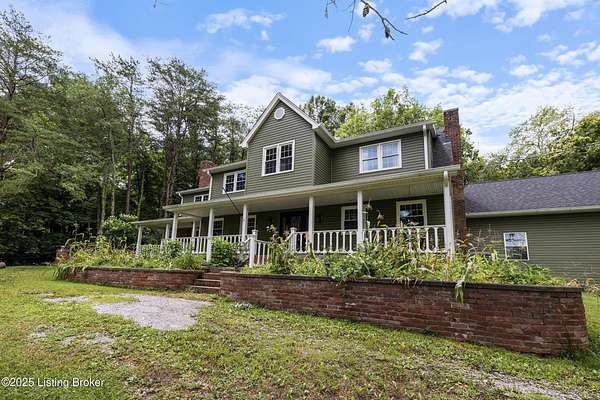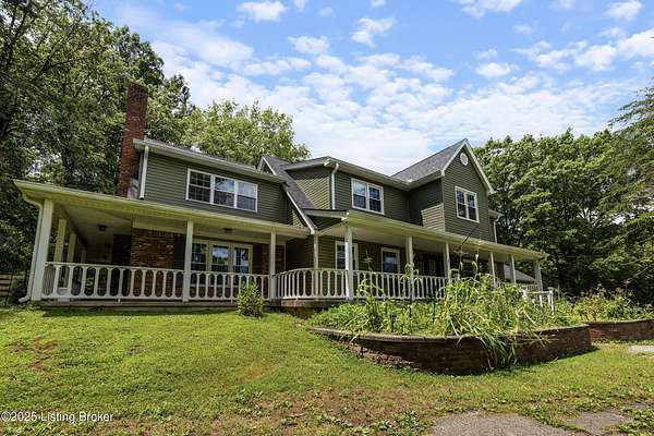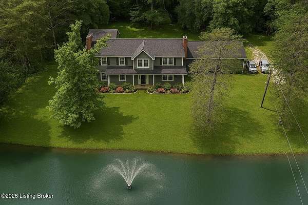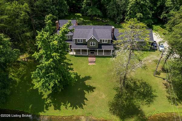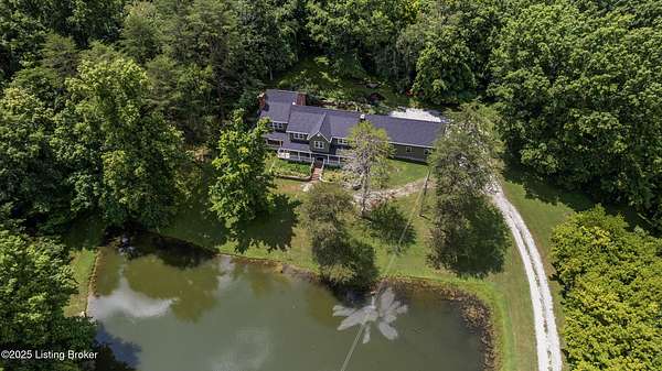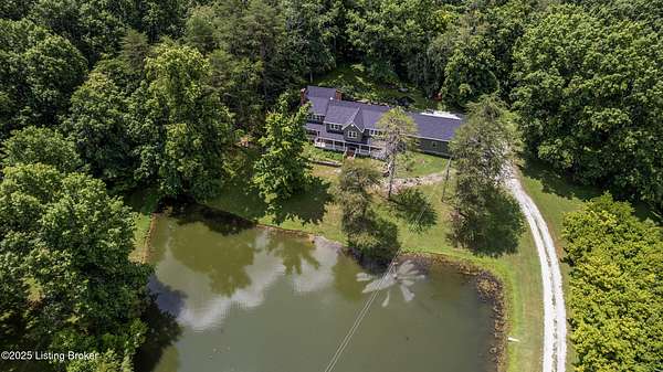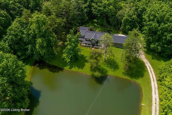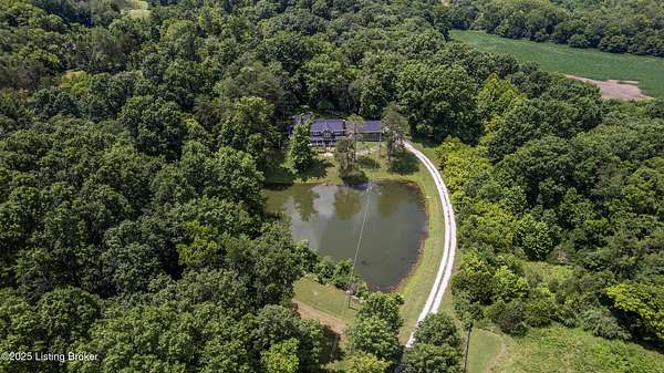 Incredible opportunity at $895,000! You won't find another property like this at this price point-6.6 private acres, completely rebuilt in 2022, high-end finishes, and total privacy. This is a rare offering-schedule your showing now while it's still available. Need a first-floor bedroom? Done. A flexible main-level room with a beautiful fireplace and adjacent full bath access-currently used as a formal dining room-offers excellent potential for a first-floor bedroom, guest suite, or home office. Enter into this private oasis, where a beautiful, expansive pond and complete privacy immediately set the tone. This completely rebuilt (2022) luxury estate sits on 6.6 tree-lined acres, offering an exceptional blend of privacy, style, and modern function. The open floor plan showcases soaring ceilings, hardwood floors, and a chef's kitchen with custom cabinetry, high-end appliances, and stone countertopsflowing seamlessly into the dining area and a stunning great room with fireplace. Step outside to your private outdoor living retreat, complete with a fully equipped outdoor kitchen, large flat-screen TV, and seating area designed for year-round enjoyment and entertaining. Upstairs, the luxurious primary suite features two walk-in closets, a soaking tub, walk-in shower, dual vanities, and a custom makeup station. Two additional bedrooms and two full baths complete the second level, all offering peaceful scenic views. Additional highlights include a custom laundry room with dog shower, full unfinished walk-out basement, and all major systems replaced in 2022including roof, HVAC, plumbing, electrical, appliances, and more. Conveniently located with quick access to Hwy 265 and I-64, close to parks, schools, shopping, and dining. Don't miss this one-of-a-kind property at an incredible value.