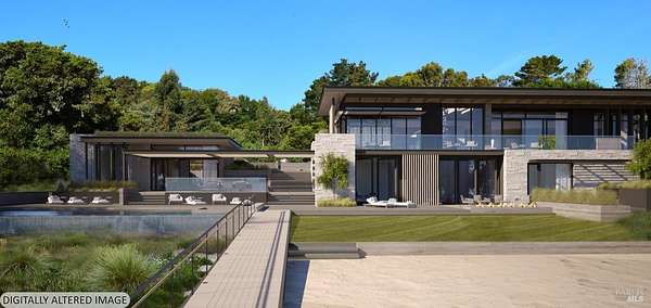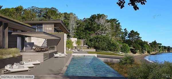 This is a once-in-a-lifetime opportunity to acquire a 7+ acre beachfront trophy property with permit-pending *Approved Plans* for a 5 bedroom, 7 bathroom, 7,300 SF luxe home + a spectacular 1 bedroom, 1 bathroom guest house. Located in highly prized Tiburon CA and in one of Southern Marin's most sought-after neighborhoods, this inspired Californian Modern home was imagined by esteemed architect Sean Bailey who has designed the most elegant glass, cedar, stone, and steel cutting-edge gated luxury estate. With an abundance of naturally occurring level land, the indoor-outdoor living is extended throughout the space with the creation of multiple seamless patios, decks, and outdoor living rooms. This one-of-a-kind modern and luxurious private beachfront estate redefines Bay Area living. Approved amenities include an infinity pool and spa, a yard for play, private auto-court for ample parking, and a spacious 3 car enclosure. A truly unique opportunity offering the most compelling lifestyle.