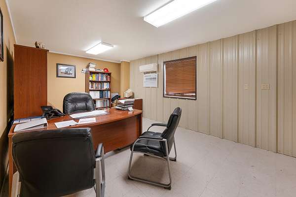 Reception area, conference room, 7 offices, recreation area, 3 bathrooms, storage room and the ultimate 8000 SF+ of warehouse. The property is currently on a leasehold.