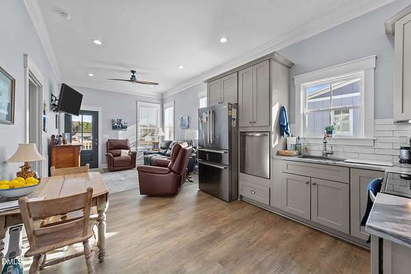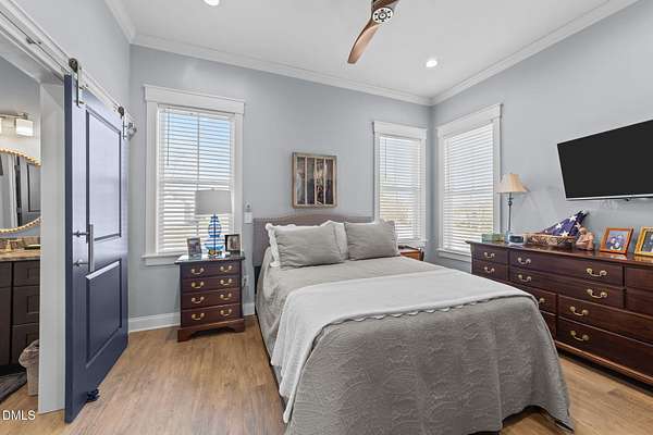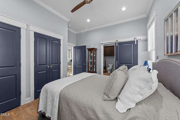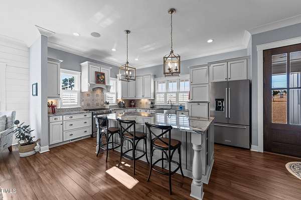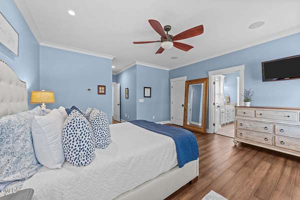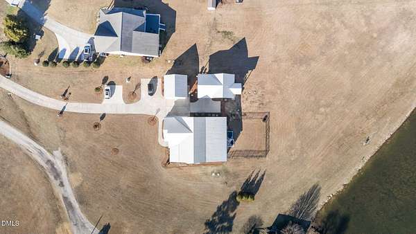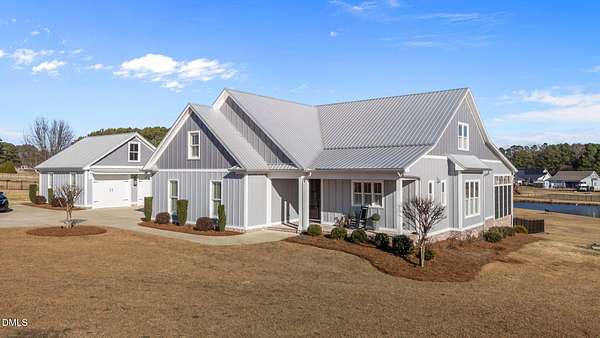 Custom-built home offering space, flexibility, and serene country living on nearly 3 acres. This 3,664 sq ft residence features 4 bedrooms, 3 full baths, and 2 bonus rooms, providing ample room for work, play, and entertaining. The open floor plan is highlighted by hardwood floors throughout the main level and flows seamlessly into a charming three-season room overlooking the property. 9 - 10 ft ceilings downstairs. Central vacuum system, Sonos speaker system, landscape lighting system, Exterior cameras, Storage shed. Stainless steel appliances, gas Kitchenaid range, drawer microwave, huge kitchen island. Well and Septic on property. Three bedrooms on main level, one bedroom upstairs with HUGE bonus/craft/movie room with full bath. The home includes a 2-car attached garage, plus a separate 2-car detached garage for additional storage or hobbies. A standout feature is the 635 sq ft ADU with 1 bedroom, 1 bath, and carport-ideal as an in-law suite, guest house, or income-producing rental. ADU hosts stainless steel appliances, 10 ft ceilings, crown molding, LVP flooring, zero entry shower. Total lot size is 2.89 acres, with peaceful views of the approximately 1-acre pond and the privacy of expansive land, all with no city taxes. Experience country living at its finest while remaining conveniently close to downtown Raleigh, Cary, and Apex, with easy access to I-540, restaurants, shopping, YMCA and more. A rare opportunity offering loads of space, privacy, and versatility in a prime location.