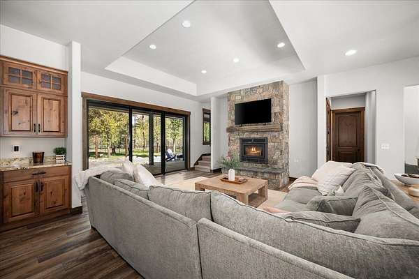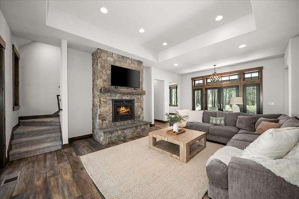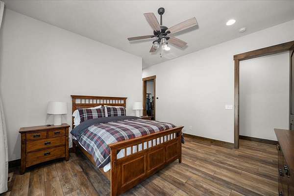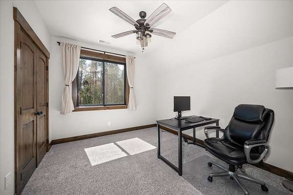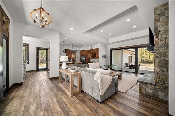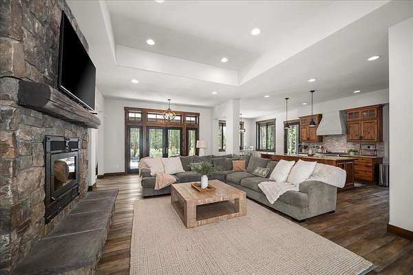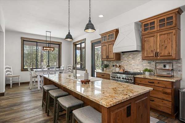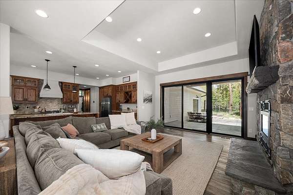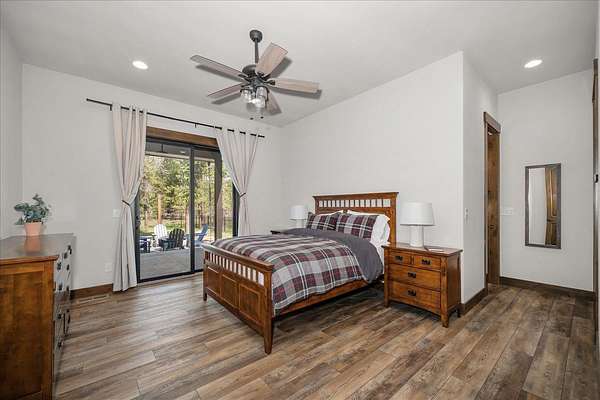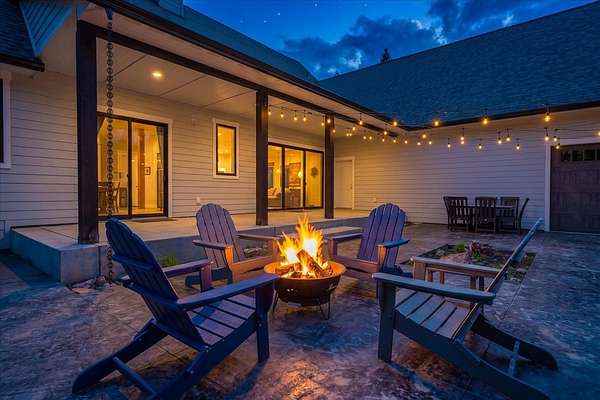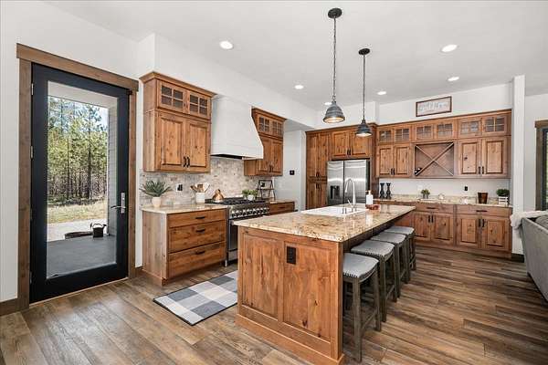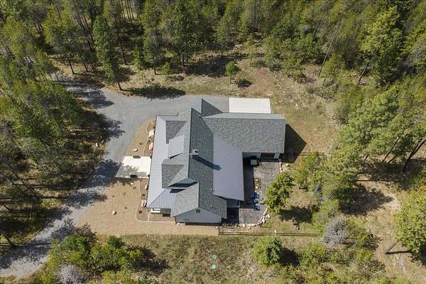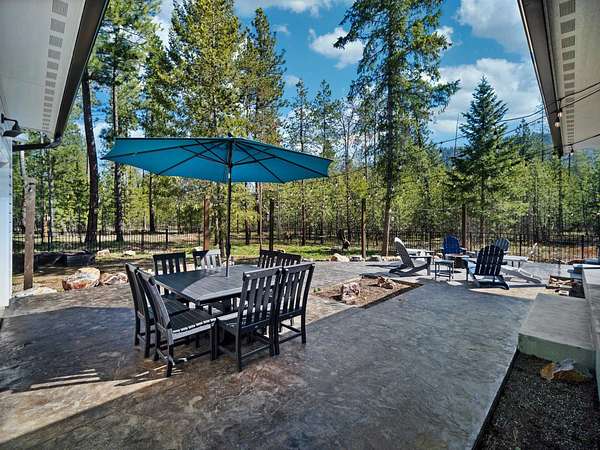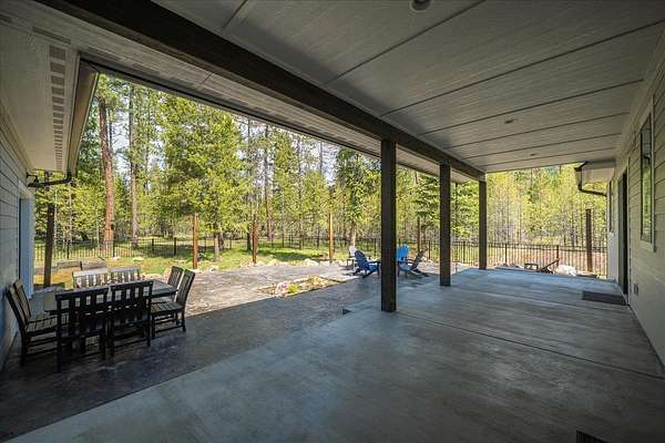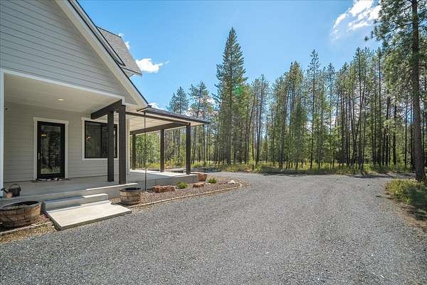 Set on 5 private acres just minutes from Loon Lake and Deer Lake, this custom home offers space, comfort, and flexibility. With 5 bedrooms and 3 bathrooms, the main floor includes the primary suite, while upstairs features two bedrooms, two non-conforming rooms, and a loft. The living area showcases a wood-burning fireplace in natural stone beneath 10-foot ceilings. A sliding door opens to a covered stamped concrete patio and wraparound porch. The chef's kitchen features a gas range, granite countertops, and a butler's pantry. Quality craftsmanship shows throughout, with low-maintenance finishes and LVP flooring. Out back, a wrought iron fence encloses the patio and fire pit area. The attached 3-car garage includes a drive-through tandem bay with front and rear doors. Easily accessible off the highway and surrounded by Pacific Northwest beauty, this property is the complete package.