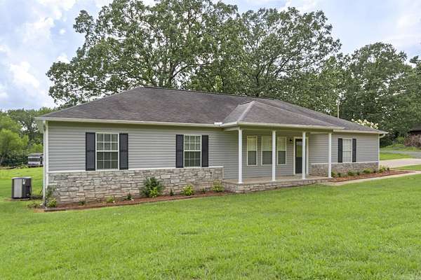 PRICE REDUCED! This stunning home features fresh paint, new light fixtures, updated flooring, a new HVAC system, and so much more. It's move-in ready with 3 bedrooms, 2 full baths, a gorgeous kitchen, a vaulted ceiling in the living area with a fireplace, spacious closets, a tray ceiling in the master bedroom, a separate laundry room, and a bonus room perfect for an office. The property includes a double garage and a backyard shop designed for cookouts. Situated on a corner lot, this home sits on 1.14 acres, or for additional cost you can purchase with 2.84 ac