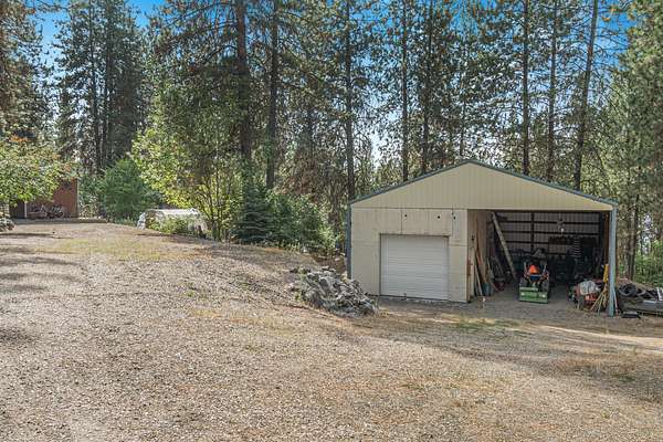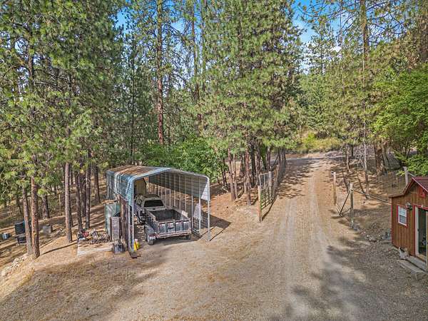 Charming retreat with stunning Lake Roosevelt views and easy access to a public boat launch. Nestled on 2.5 acres, this enchanting 3-bed, 3-bath home offers an idyllic blend of comfort and adventure. From the moment you arrive, you'll be captivated by the park-like landscape, creating a private playground. Enjoy the second-story covered decks, where sweeping water views invite you to unwind with morning coffee or host sunset gatherings. Designed for privacy and versatility, much of the land is fenced for pets or to keep wildlife out as needed. A guest house with a 3/4 bath awaits, plus two additional guest quarters. Additionally, two hobby sheds, a huge shop, as well as an oversized 3 car garage await your projects, creative pursuits and storage.