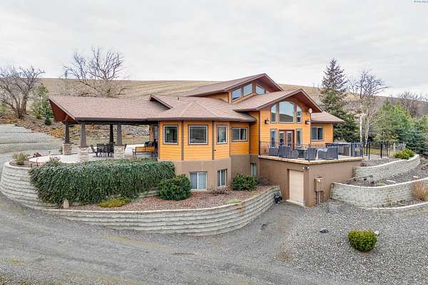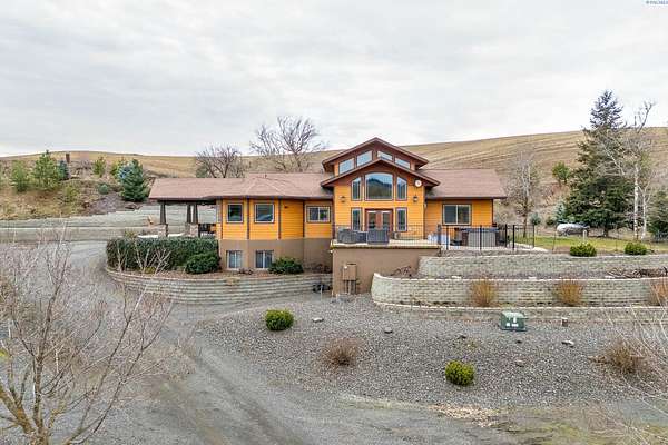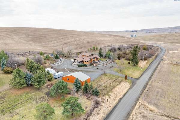 MLS# 290284 Step inside a masterfully crafted custom home where high quality construction meets the serene beauty of the Palouse countryside. This impressive 4-bedroom, 3-bath home spans 4,820 square feet of thoughtfully designed living space. The spacious oval shaped kitchen with high end appliances provides ample room for entertaining and the natural light and amazing views are the chef's kiss. The spacious living room with a 2-story vaulted ceiling includes a stone gas fireplace and is the perfect spot for hosting guests and family gatherings. The shop area has 3 distinct areas for your hobbies and storage. Imagine RV storage, Workshop and even a Chicken Coop! The expansive acreage offers endless possibilities for large and small families. The outdoor area is pristine and has a covered area for dining and a hot tub for those relaxing, star gazing evenings. This house is more than a home - it is a lifestyle opportunity for those wanting both seclusion and being minutes away from Pullman.