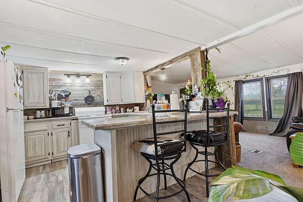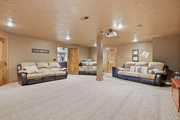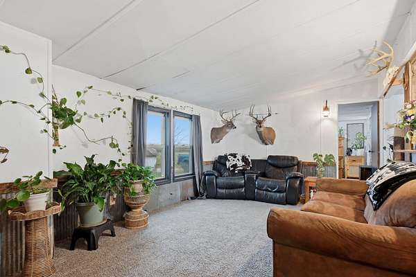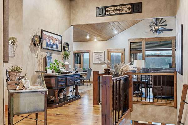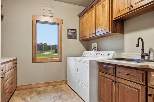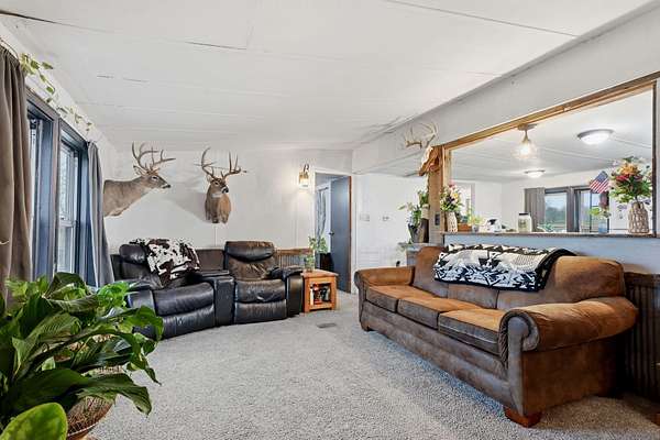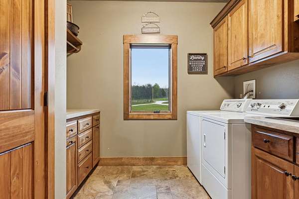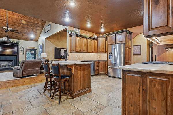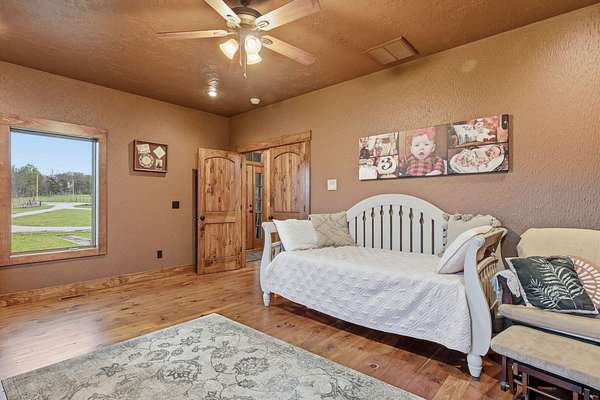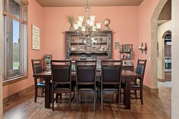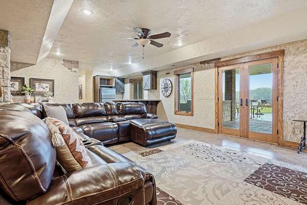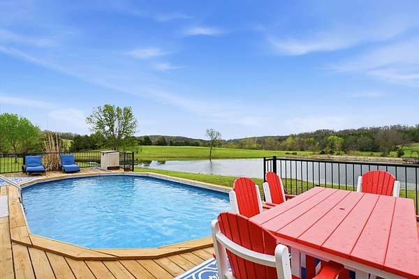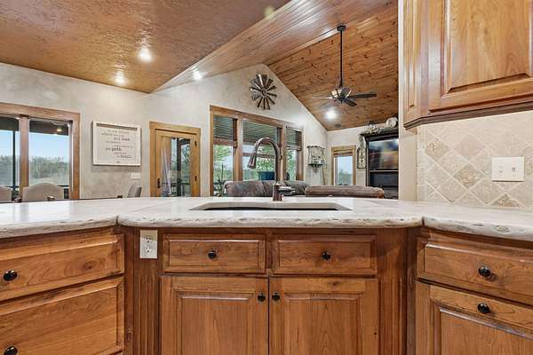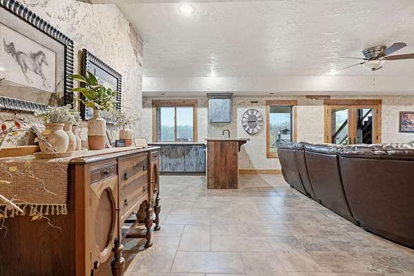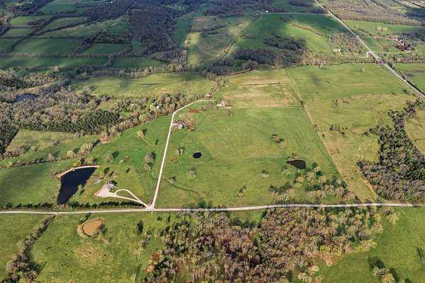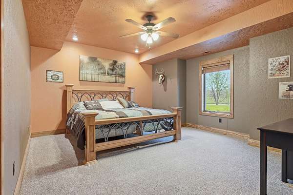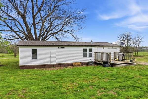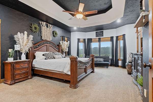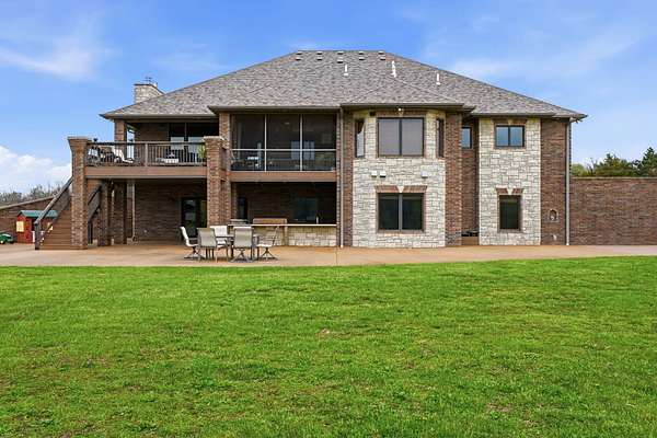 This is a true COUNTRY DREAM on 80 breathtaking panoramic acres! This custom-built Craftsman-style home offers over 4,600 sq ft of living space with 5 bedrooms and 3.5 baths, designed with exceptional attention to detail inside and out.Step inside to find hand-scraped hardwood flooring, knotty alder cabinetry, limestone countertops, tray ceilings, and dual fireplaces (gas and wood-burning). The main level features a spacious living area with cathedral wood ceilings, a stunning kitchen with commercial-grade cook stove, walk-in pantry, sit-down bar, and both formal and casual dining spaces. The primary suite offers a spa-like bath with walk-in tile shower, jetted tub, and oversized closet.The walkout lower level is built for entertaining with an additional living area, wood-burning fireplace, full kitchen, movie theater, storm shelter, and 3 additional bedrooms and 2 baths.Outdoors, this property truly shines--perfect for gatherings and quiet country living alike. Enjoy the outdoor kitchen, fire pit, stamped concrete patio, outdoor shower, basketball area, and a pool with wraparound deck overlooking a fully stocked pond with fishing dock.The land is ideal for livestock with fenced and cross-fenced pasture, two automatic waterers, barn with electric and water, cattle pens, and a machine shed. A 1,200 sq ft double-wide provides additional living quarters or rental potential.Additional features include energy-efficient spray foam insulation and a backup generator for peace of mind.This one-of-a-kind property offers the perfect blend of luxury living and functional acreage--a must see!