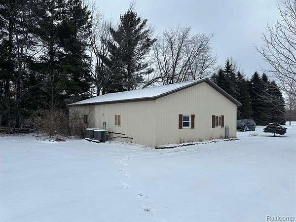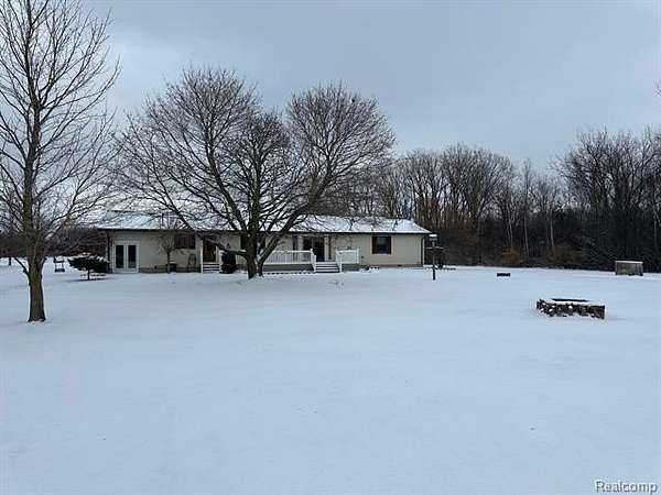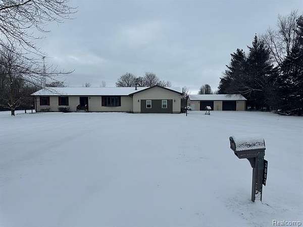 Est $1,736/moRanch home with 3 bedrooms, 1 full bath and 1 half bath, attached garage is finished, still having the cement floor if you wanted to go back to having a garage. Dining room has patio doors leading to back yard deck. 32 x 48 pole barn insulated with spray foam and divided into 2 sections, would need to dismantle walls to be able to open the 2 main doors. Very nice 4.85 acres with beautiful trees and garden area. Good hunting area, and close to the Cass City River and walking trails.