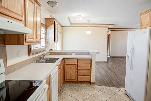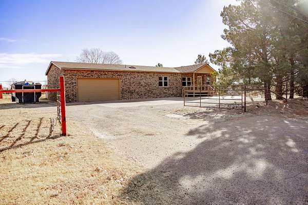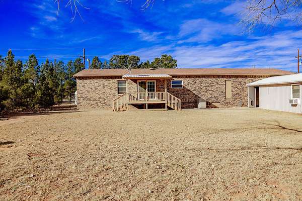 A rare find in a prime location. Opportunities await this 2.16 acre rural property with 2,194 sq ft of space situated in the desirable Shallowater School District. It offers a blend of country style living with convenient access to city amenities. This charming and completely bricked 3 bed, 2 bath manufactured home is ready for your vision. Inside, the primary suite includes an exceptionally large walk-in closet and a spacious primary bathroom with a jetted tub that has never been used. Beautiful shutters are featured throughout the home, adding both appeal and functionality. Its oversized built-on garage provides ample space for vehicles and storage. It also features a 504 sq ft bonus space that can be used as a shop, man cave, or game room with a cast iron wood burning stove. This property has a complete perimeter fence, 28 ft pipe entrance, and gravel drive with an oversized concrete slab. Enjoy outdoor living from the inviting front and back covered porch decks. Large mature pine trees surrounding the property provide privacy and seclusion. Multiple frost-free faucets around the property easily convert the outdoor space for gardening, poultry, or livestock, all on your own private well and a fully enclosed well house. Washer/Dryer and Refrigerator will convey.