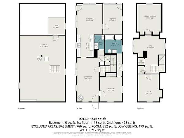 - Basement, Bathroom x 2, Bedroom x 4, Bonus Room, Dining Room