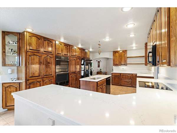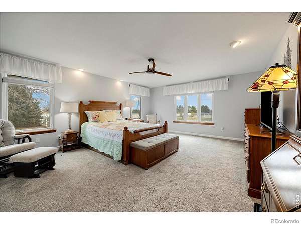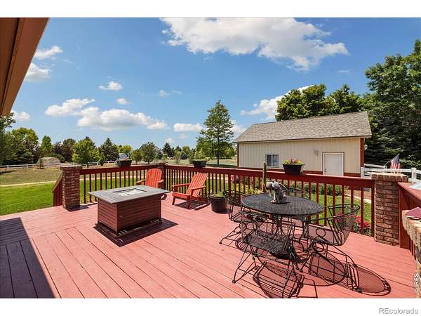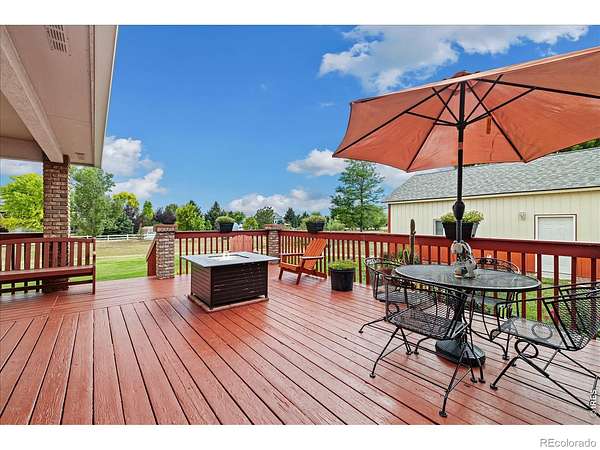NEW KITCHEN! Be prepared to be impressed with the Country Elegance this residence offers! Nestled in a quiet part of the neighborhood, surrounded by a mature treed lot with spectacular landscaping on 1.81 acres to call your own. The newly remodeled kitchen features new cabinets and drawers (with soft touch close), quartz countertops/backsplash, floating shelves, disposal and stainless steel undermount sink, new double ovens complete the kitchen upgrades. The 3 baths on the main floor have new quartz countertops/backsplash and undermount sinks as well! This lovely home has been well maintained with a newer roof (Class 4 shingles), LeafGuard gutters, and insulated garage doors (2018), two recently upgraded HVAC systems (2018 and 2019) and two water heaters (2021) and much more! The home is large and very flexible in the use of space with oversized and accommodating rooms! The home contains 5 bedrooms + office (the office has an electric fireplace and can be easily converted into a bedroom with adjoining bathroom and closet). The main level creates a wonderful entertainment and lifestyle layout with spacious rooms, loads of windows, a huge primary suite complete with spa like bath, dining room and a welcoming living space with floor to ceiling stone fireplace for the extra wow factor you've been looking for! Upstairs you'll find additional beds and baths which are well equipped with spacious sizes. The basement space has been recently finished (2021) with a huge living space, built in shelves, and enough room to easily add a bedroom or 2 if you need them, all close to the beautifully finished basement bath. A huge deck provides outdoor entertainment and relaxation. The newly constructed detached 24 x 26 garage (with 120/240 volt) can be your shop, your hobby space, a barn, etc. Meadis home to fantastic schools and a great small hometown feel. This home has easyaccess to I-25. Please see the attached list of inclusions and upgrades for this home !