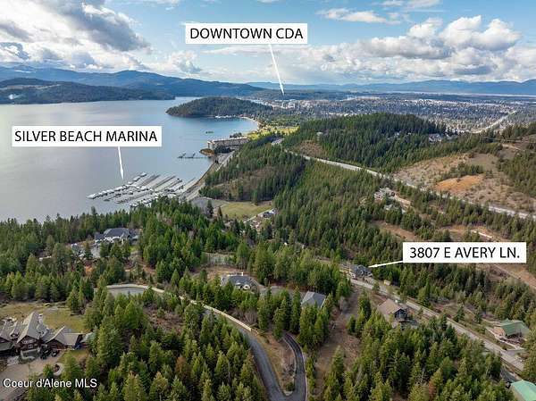 From Sherman Ave, T/R onto E Coeur d'Alene Lake Drive, Across the street from the Silver Beach Marina is Silver Beach Rd T/L and continue up the hill which turns into Marmot Trail and T/R onto Avery